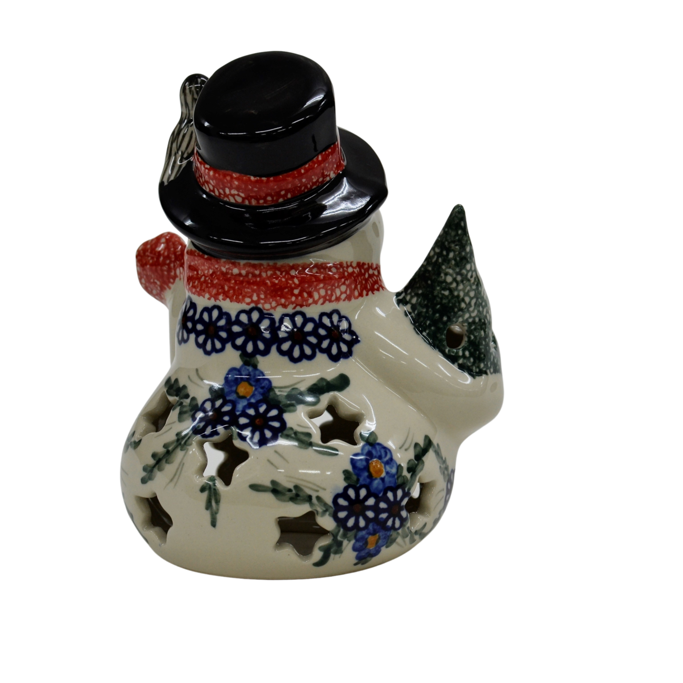Przedstawiamy figurkę – bałwan mały, pięknie zdobiony produkt ceramiki artystycznej z Bolesławca. Bałwan ceramiczny z pięknym kapeluszem i ptaszkiem na nim, patrzącym z nadzieją na kolejne płatki śniegu. A bałwan ten ma otwory, z których piękny blask świeczki unosić się będzie we wnętrzu Twojego domu. Został wykonany w sposób tradycyjny dla ceramiki z Bolesławca. Dekoracja ręcznie malowana, okryta transparentnym szkliwem po to aby lśnić i błyszczeć oraz zachować najwyższą jakość przez wiele lat, po to aby cieszyć kolejna pokolenia w czasie świąt Bożego Narodzenia.