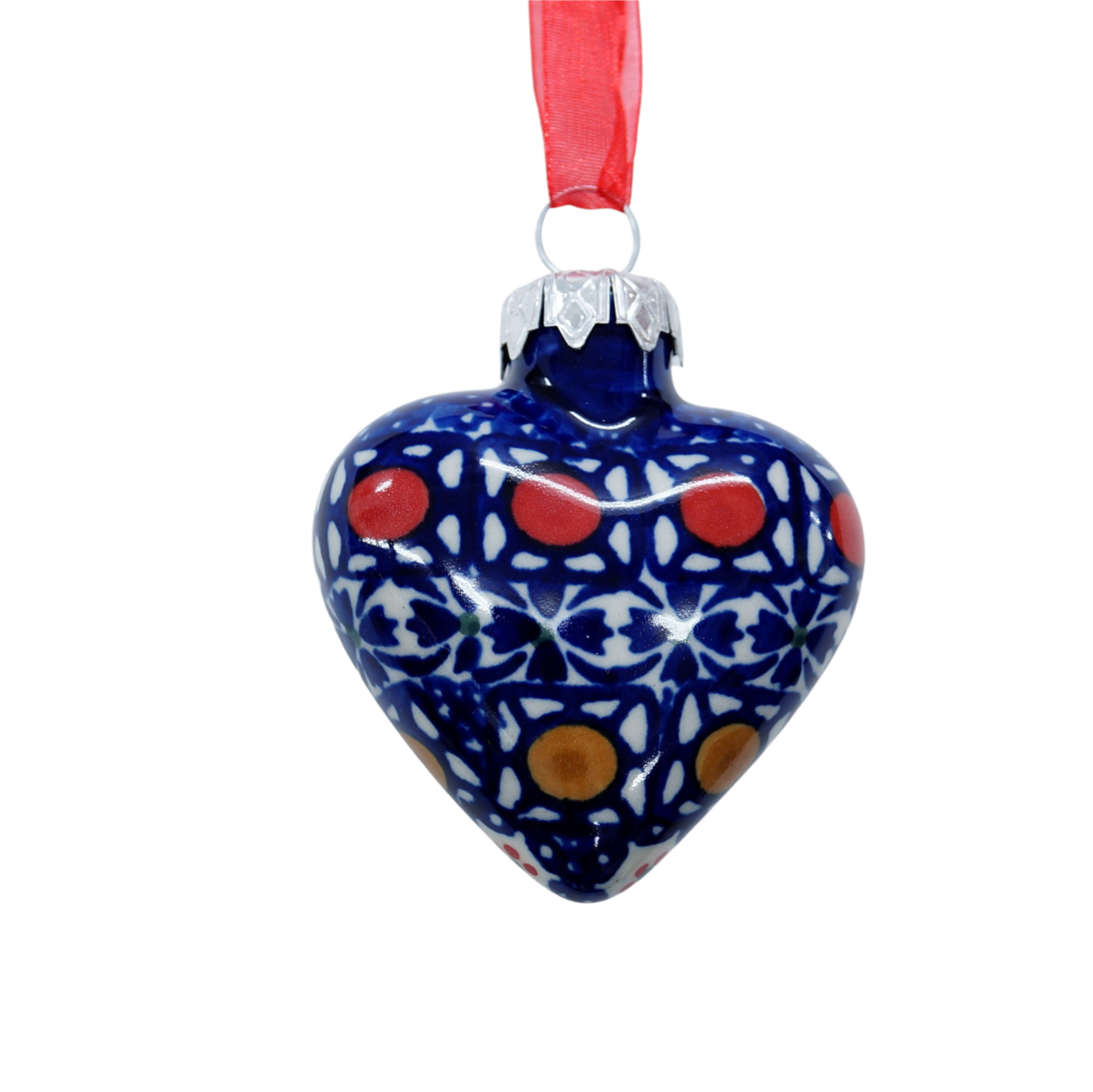 Bombka ceramiczna wisząca w kształcie serca. Wszystkie bombki ceramiczne nadają się idealnie jako ozdoba świąteczna do powieszenia na oknie, na choince lub jako prezent, a nawet do dekoracji stroików świątecznych.