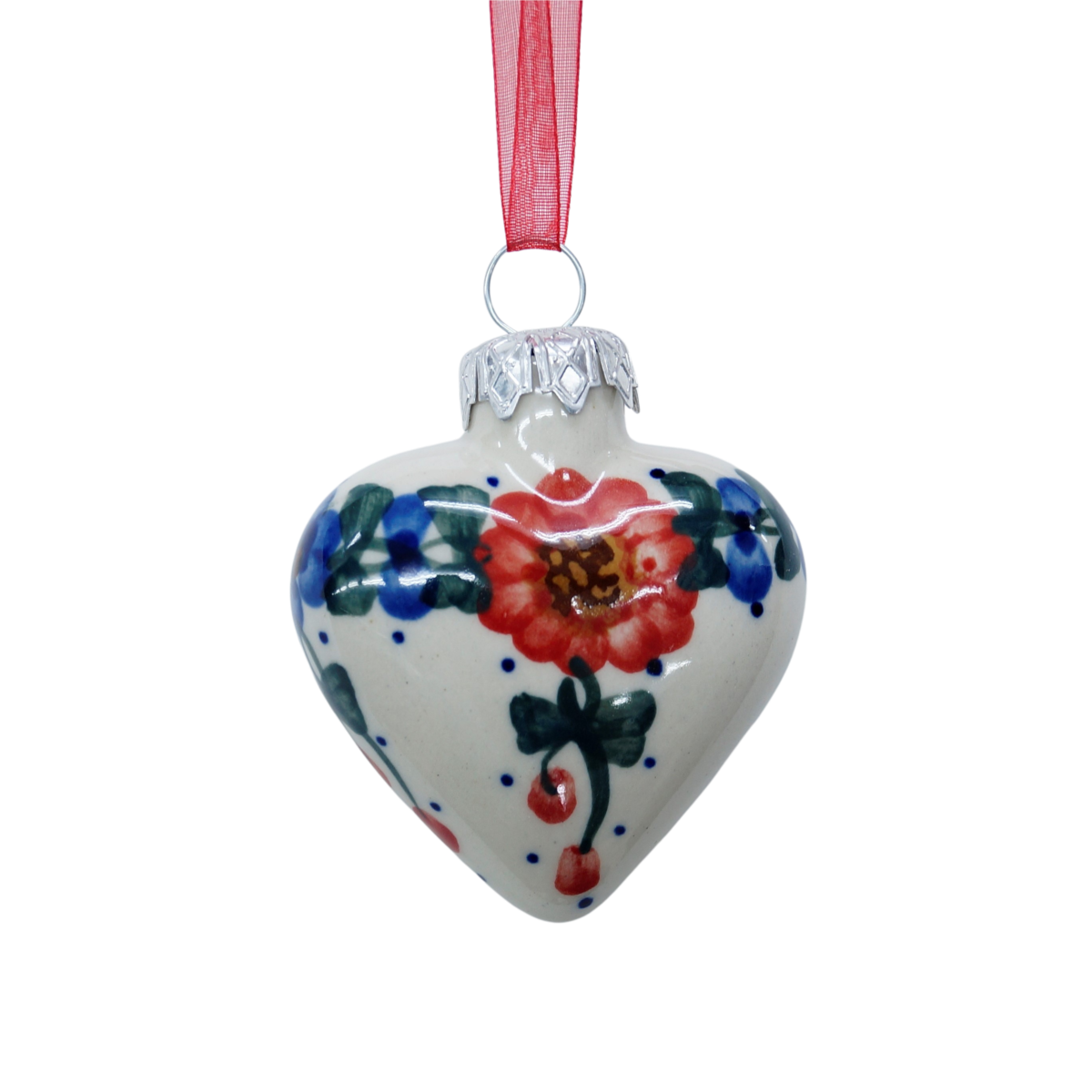 Bombka ceramiczna wisząca w kształcie serca. Wszystkie bombki ceramiczne nadają się idealnie jako ozdoba świąteczna do powieszenia na oknie, na choince lub jako prezent, a nawet do dekoracji stroików świątecznych.