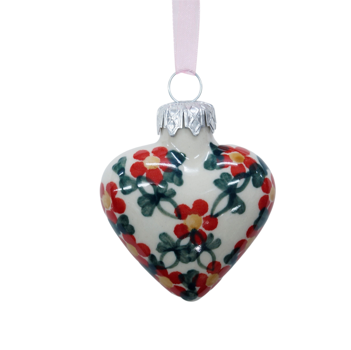 Bombka ceramiczna wisząca w kształcie serca. Wszystkie bombki ceramiczne nadają się idealnie jako ozdoba świąteczna do powieszenia na oknie, na choince lub jako prezent, a nawet do dekoracji stroików świątecznych.