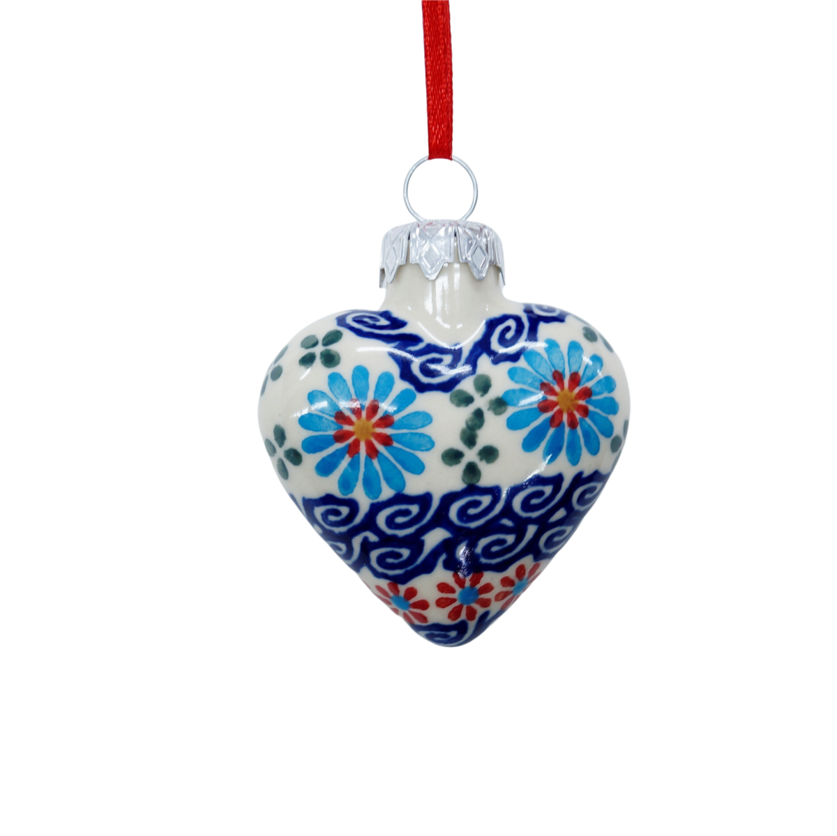 Bombka ceramiczna wisząca w kształcie serca. Wszystkie bombki ceramiczne nadają się idealnie jako ozdoba świąteczna do powieszenia na oknie, na choince lub jako prezent, a nawet do dekoracji stroików świątecznych.