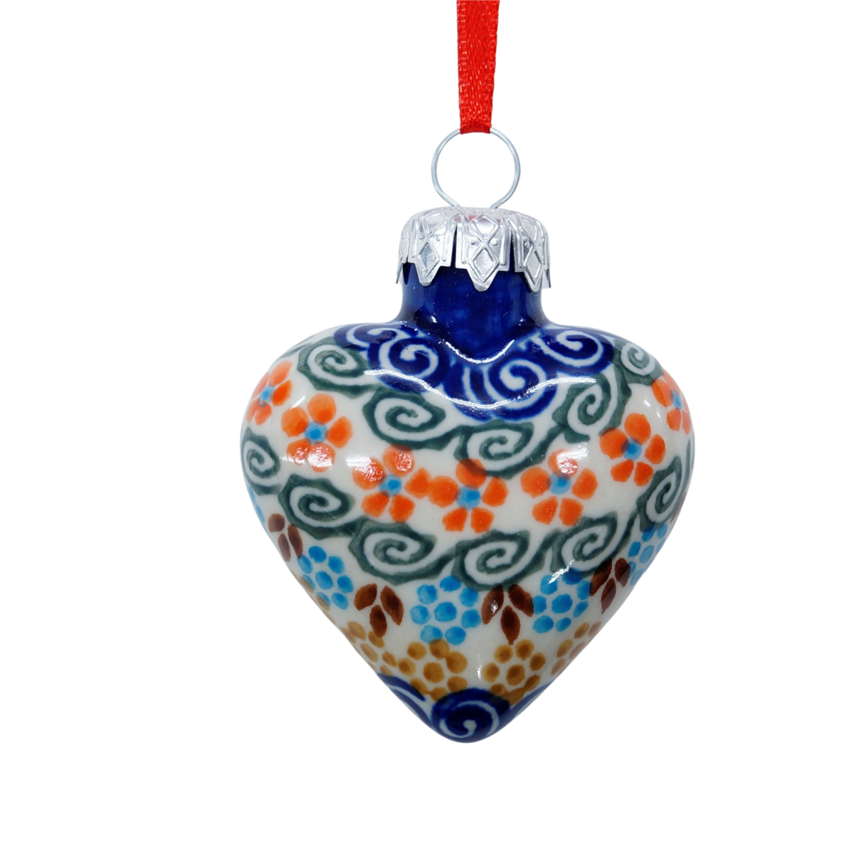 Bombka ceramiczna wisząca w kształcie serca. Wszystkie bombki ceramiczne nadają się idealnie jako ozdoba świąteczna do powieszenia na oknie, na choince lub jako prezent, a nawet do dekoracji stroików świątecznych.