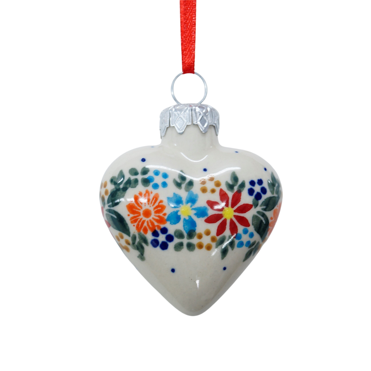 Bombka ceramiczna wisząca w kształcie serca. Wszystkie bombki ceramiczne nadają się idealnie jako ozdoba świąteczna do powieszenia na oknie, na choince lub jako prezent, a nawet do dekoracji stroików świątecznych.