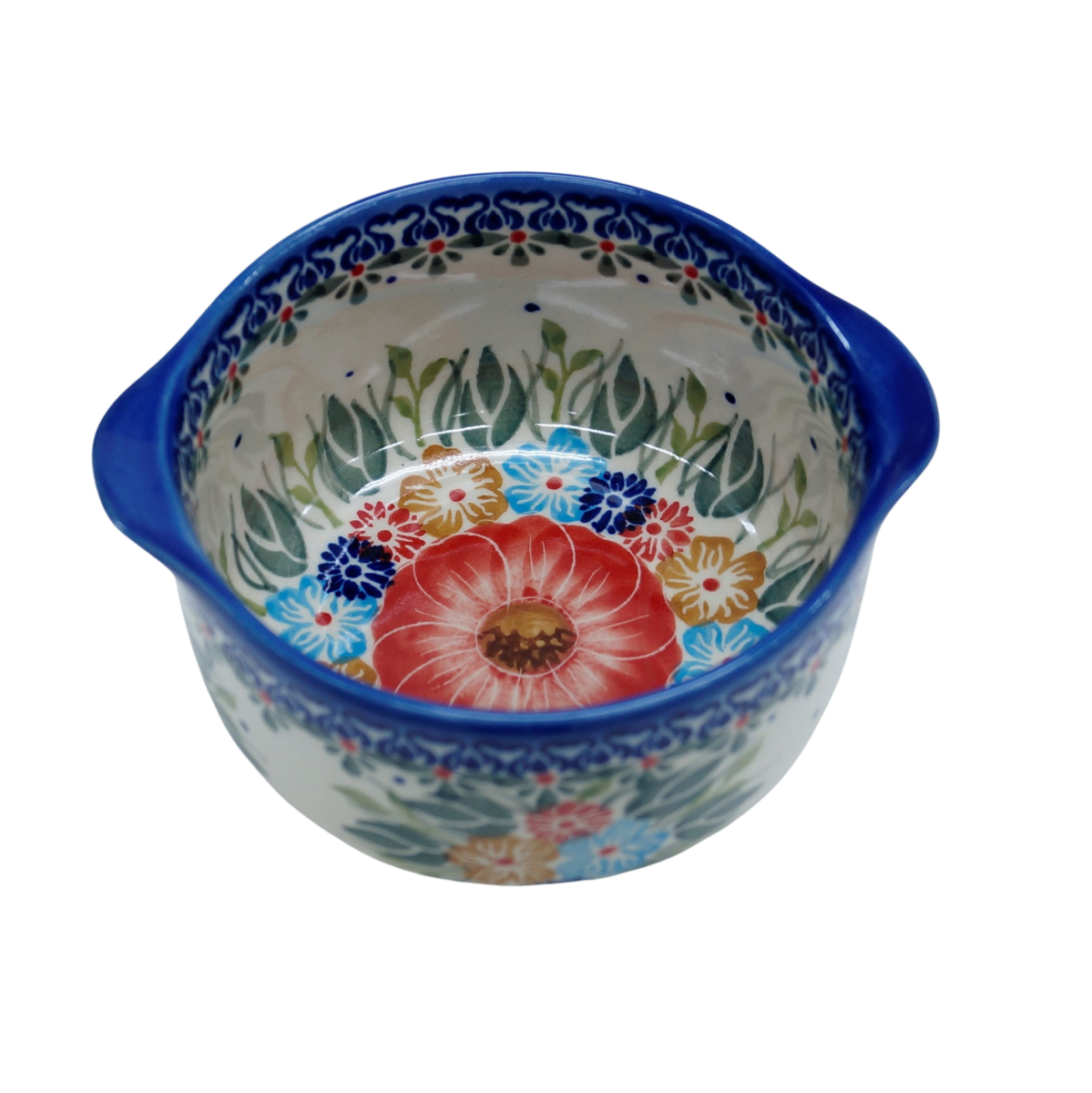 Oryginalny produkt ceramiki bolesławieckiej - miska, bulionówka, flaczarka o średnicy 11 cm, idealna do podawania i przechowywania zup i bulionów i flaczków. Twoja potrawa będzie podana pięknie i smakuje wykwitnie dzięki artystycznym naczyniom ceramiki użytkowej z rodzinnej manufaktury bolesławieckiej, CERAMIKA ANDY.
