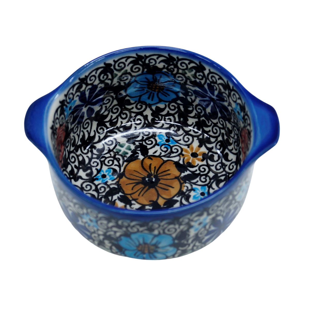 Oryginalny produkt ceramiki bolesławieckiej - miska, bulionówka, flaczarka o średnicy 11 cm, idealna do podawania i przechowywania zup i bulionów i flaczków. Twoja potrawa będzie podana pięknie i smakuje wykwitnie dzięki artystycznym naczyniom ceramiki użytkowej z rodzinnej manufaktury bolesławieckiej, CERAMIKA ANDY.