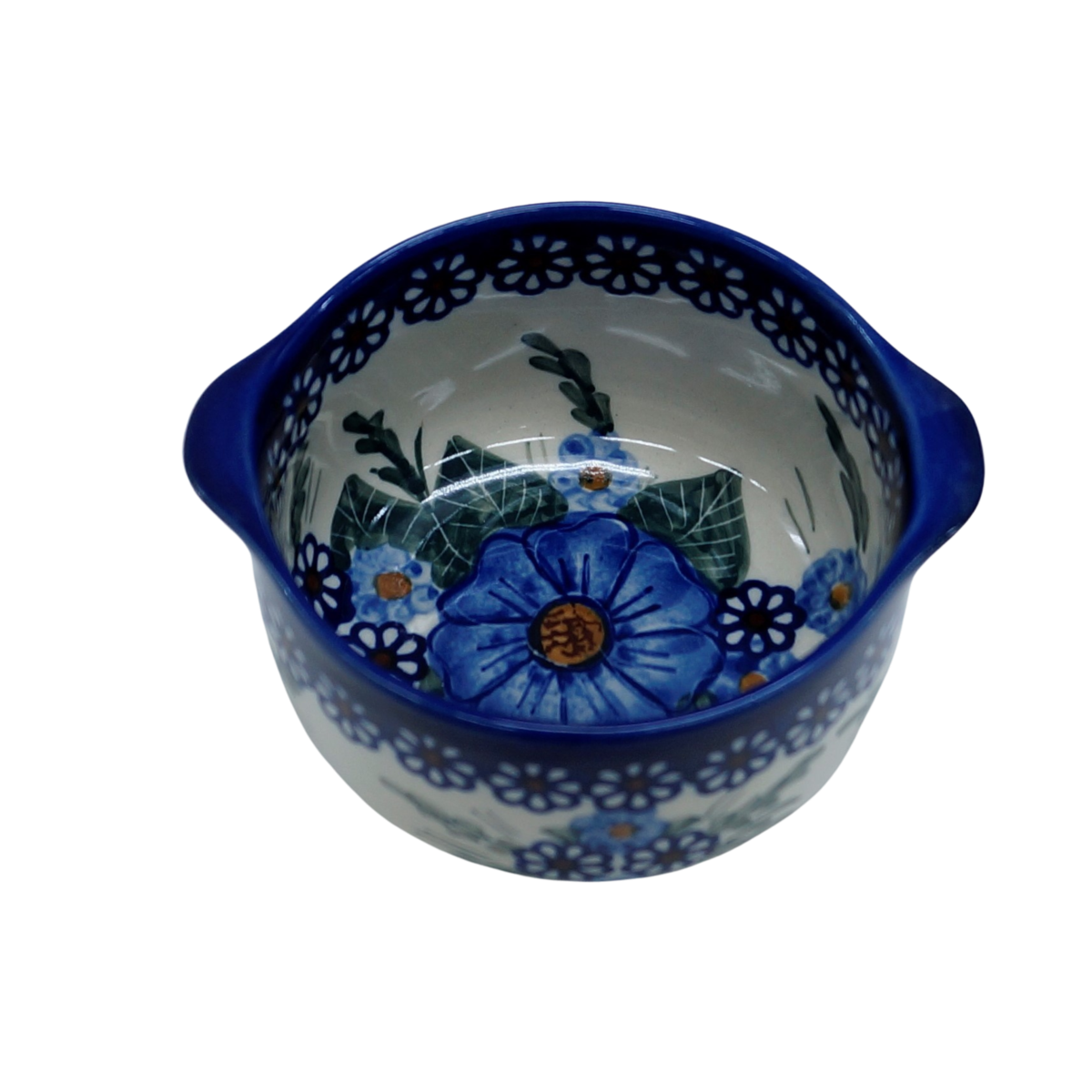 Oryginalny produkt ceramiki bolesławieckiej - miska, bulionówka, flaczarka o średnicy 11 cm, idealna do podawania i przechowywania zup i bulionów i flaczków. Twoja potrawa będzie podana pięknie i smakuje wykwitnie dzięki artystycznym naczyniom ceramiki użytkowej z rodzinnej manufaktury bolesławieckiej, CERAMIKA ANDY.