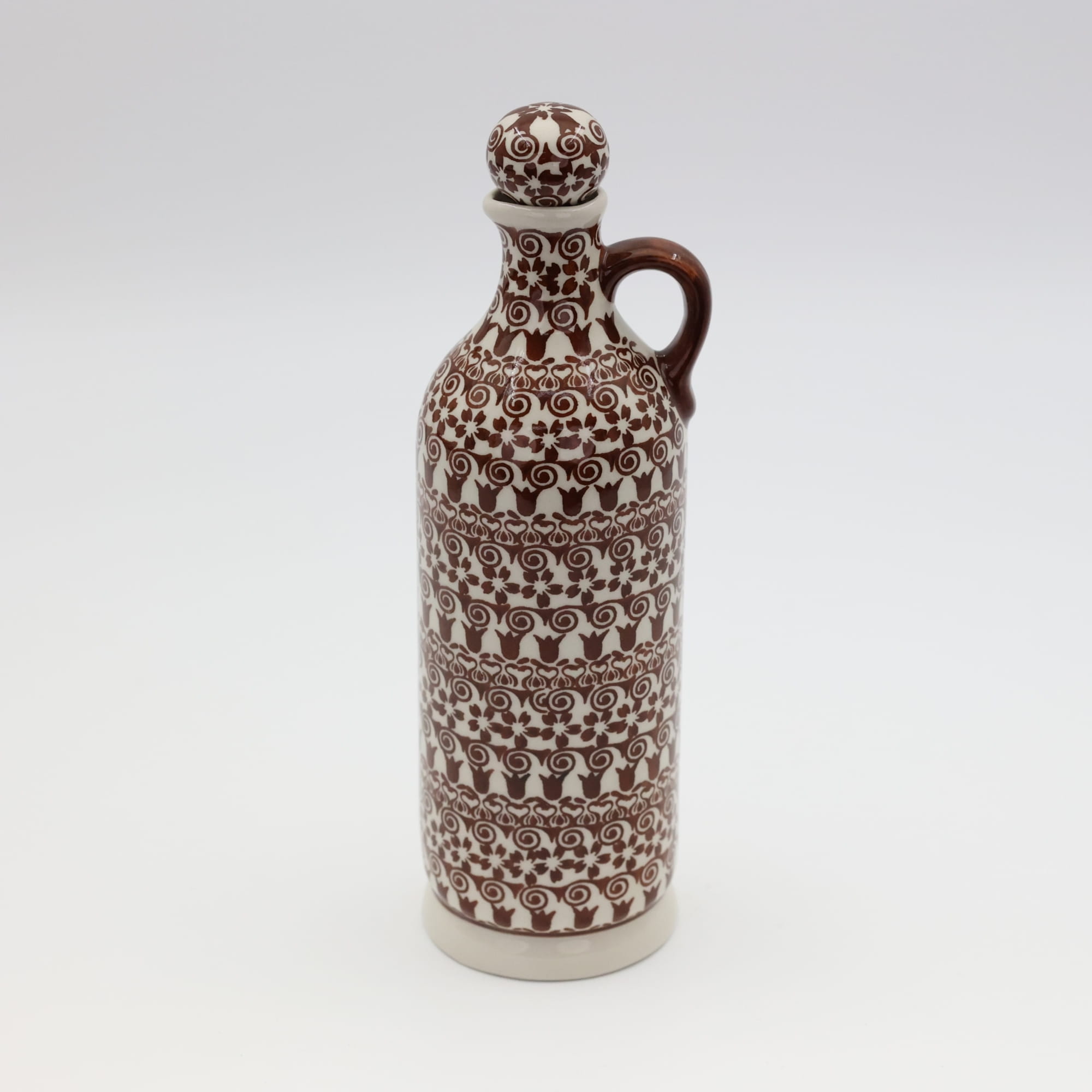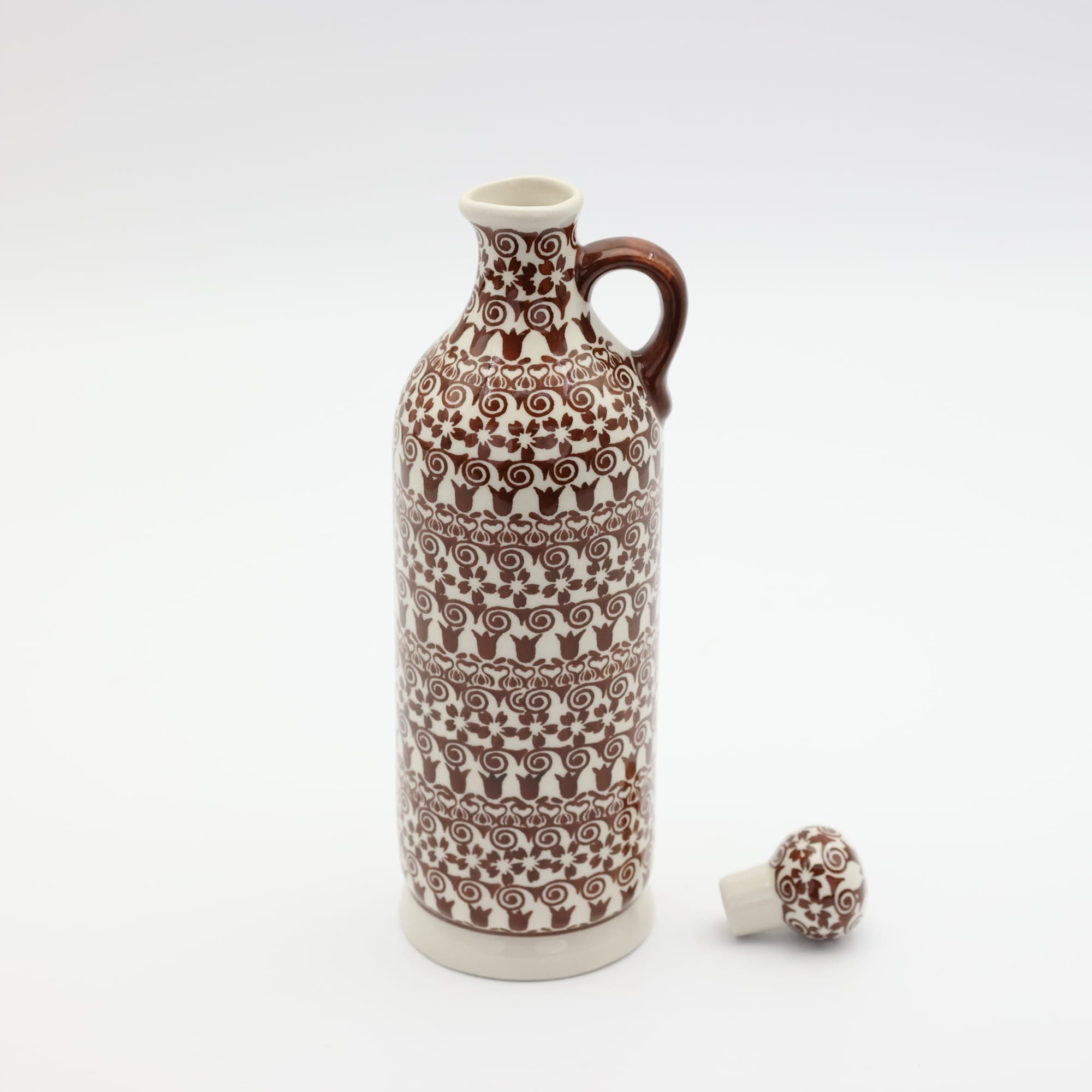 Butelka ceramiczna z uchem oraz z korkiem ceramicznym, bolesławiecka karafka - oryginalny produkt ceramiki bolesławieckiej, zachwycająca designem i funkcjonalnością o pojemności 800 ml.