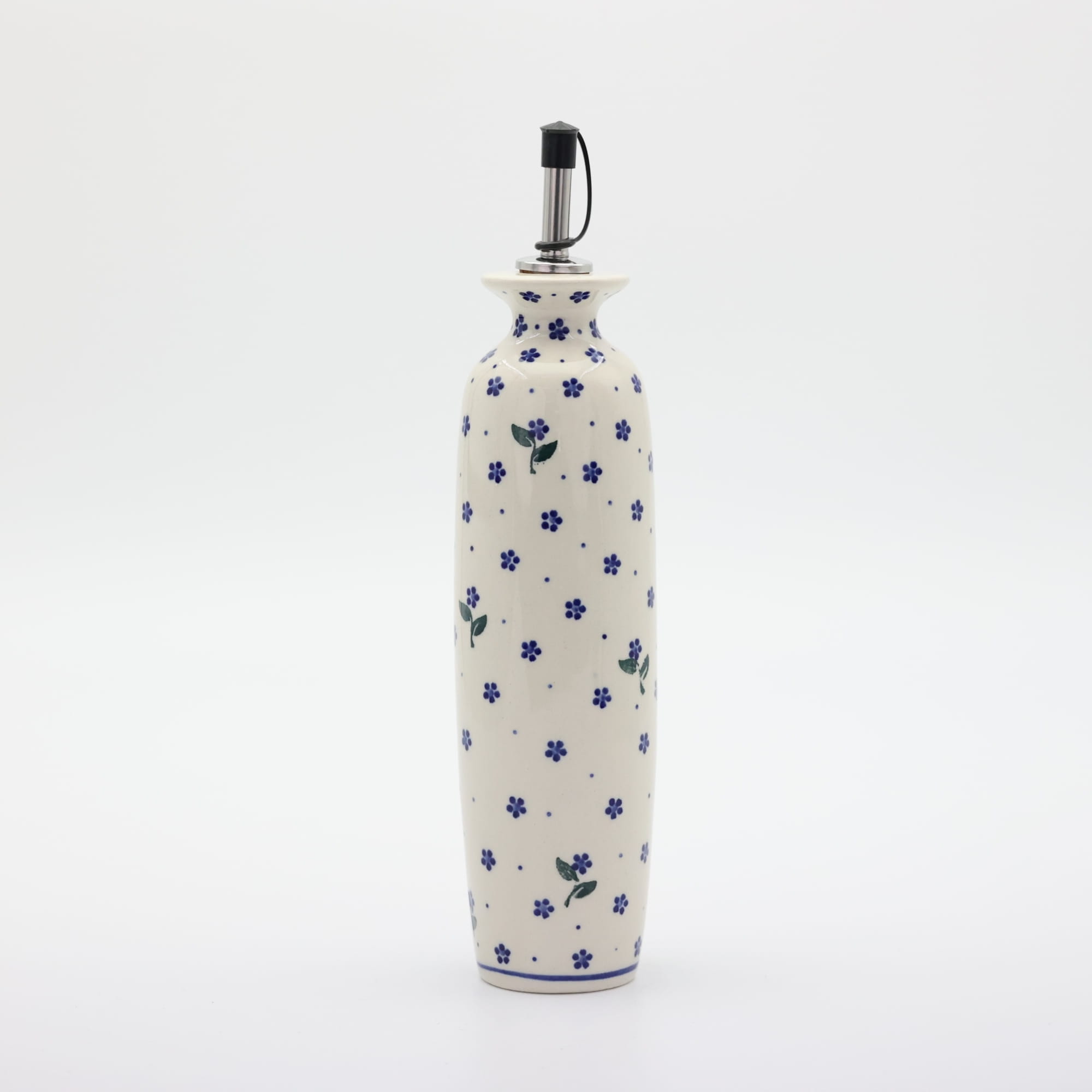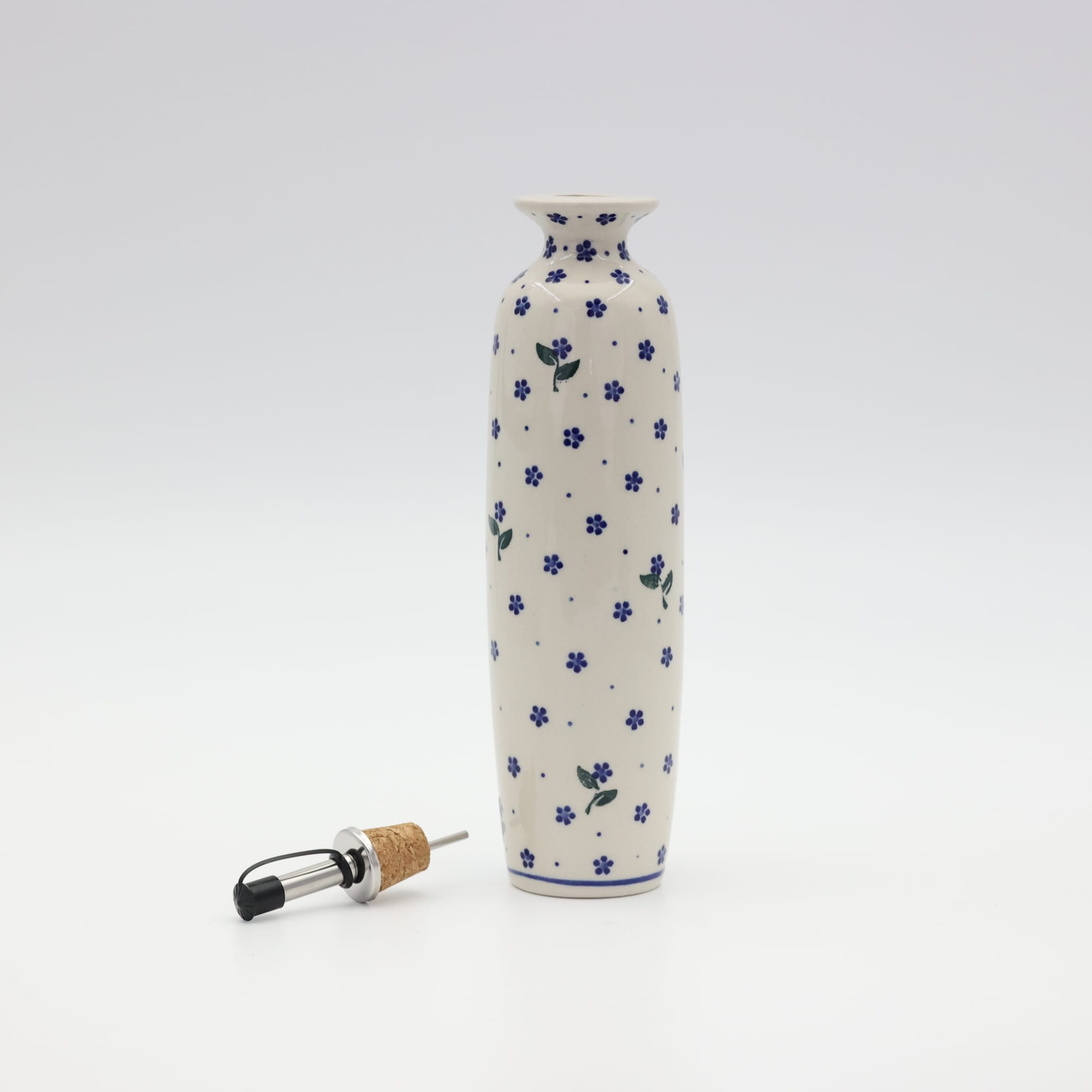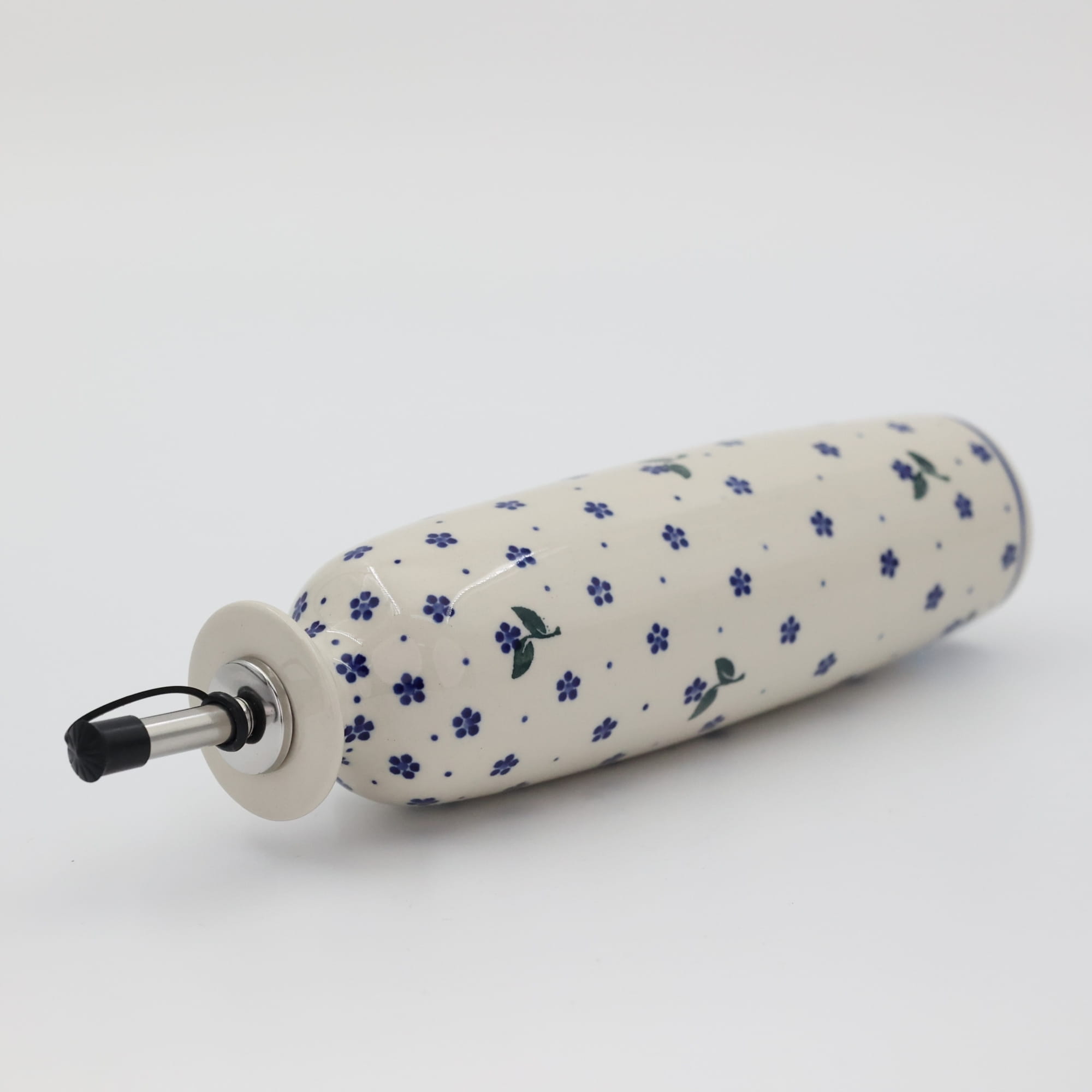 Butelka ceramiczna na oliwę o pojemności 450 ml. Bolesławiecka butelka okrągła z nalewakiem (dozownikiem).