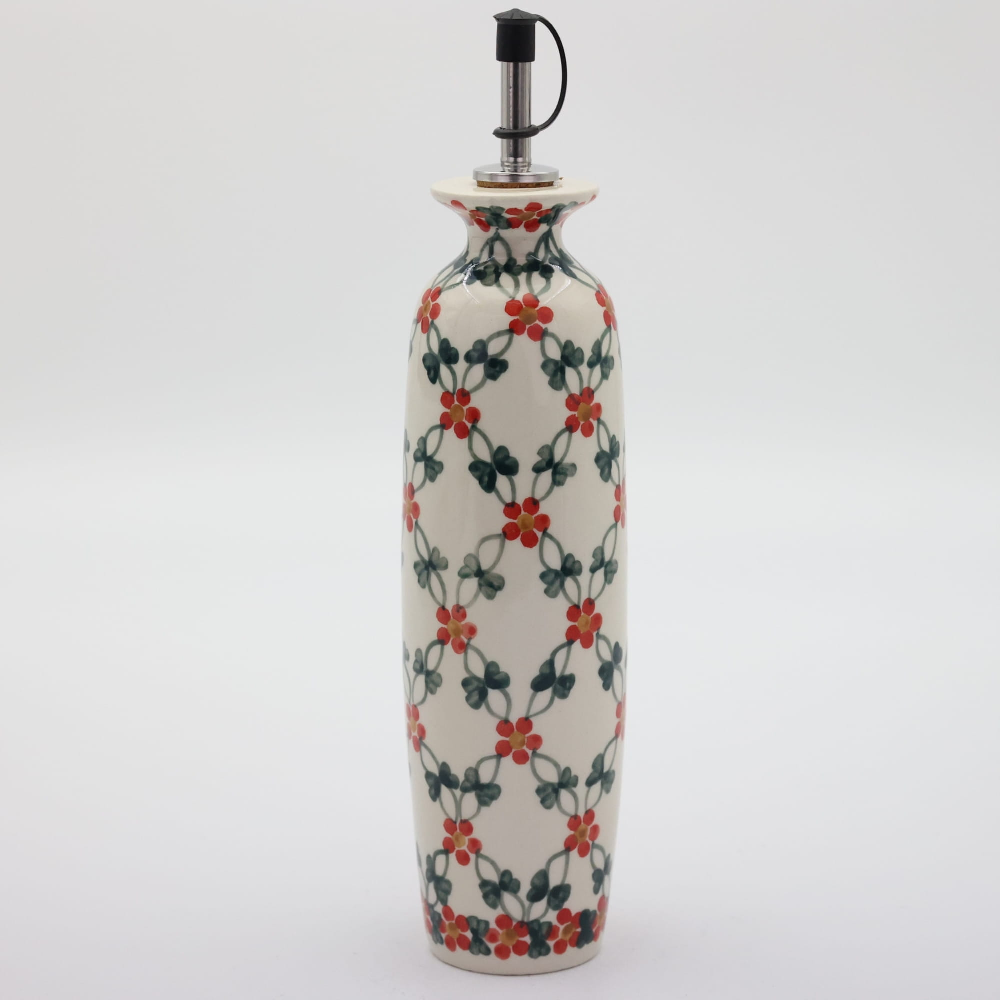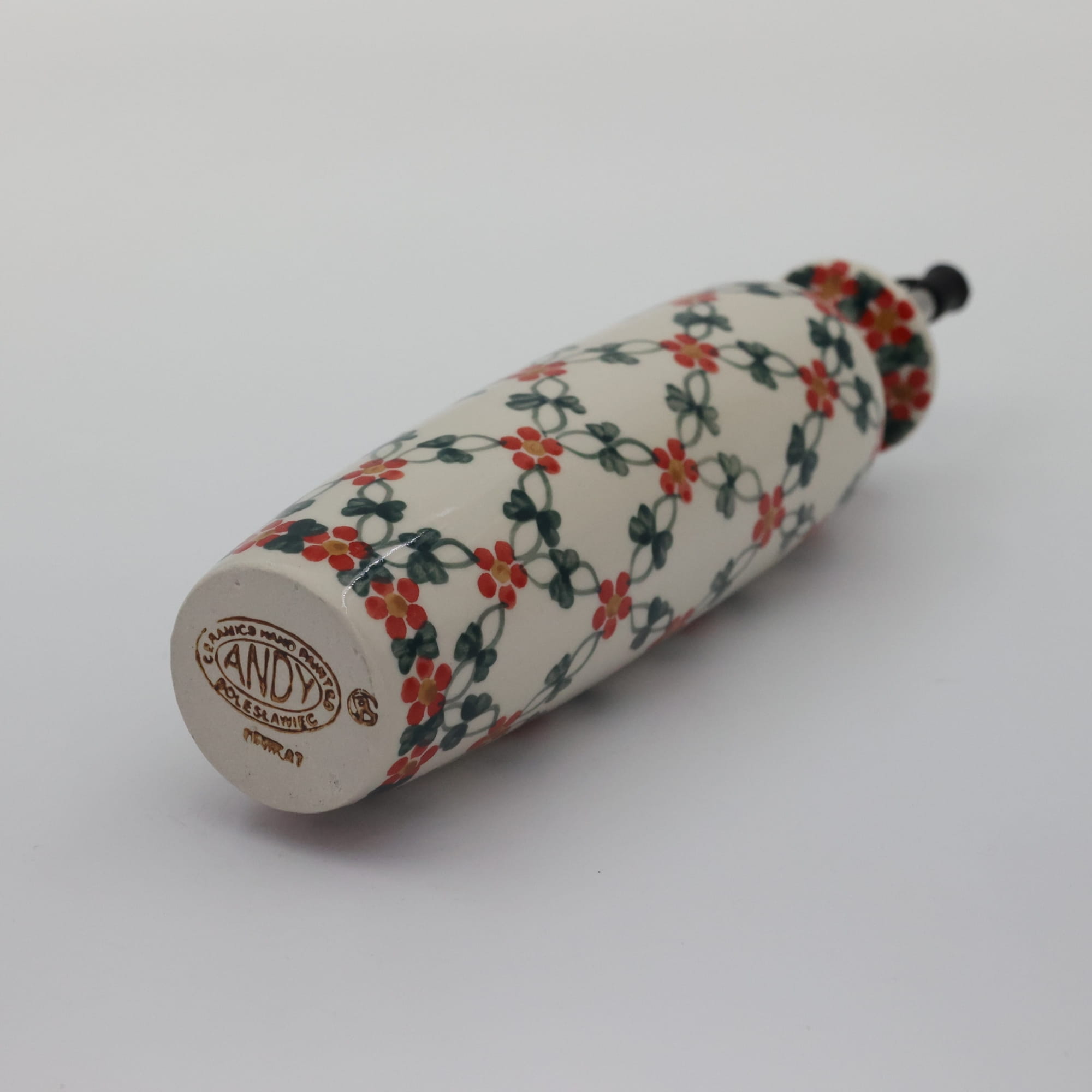 Butelka ceramiczna na oliwę o pojemności 450 ml. Bolesławiecka butelka okrągła z nalewakiem (dozownikiem).