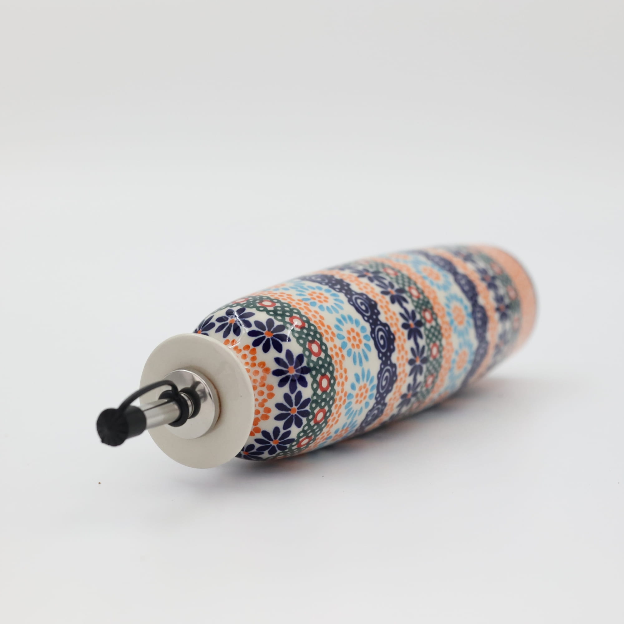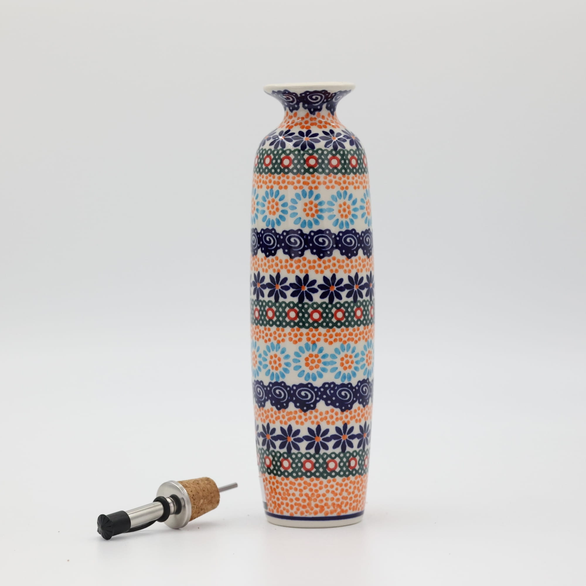 Butelka ceramiczna na oliwę o pojemności 450 ml. Bolesławiecka butelka okrągła z nalewakiem (dozownikiem).