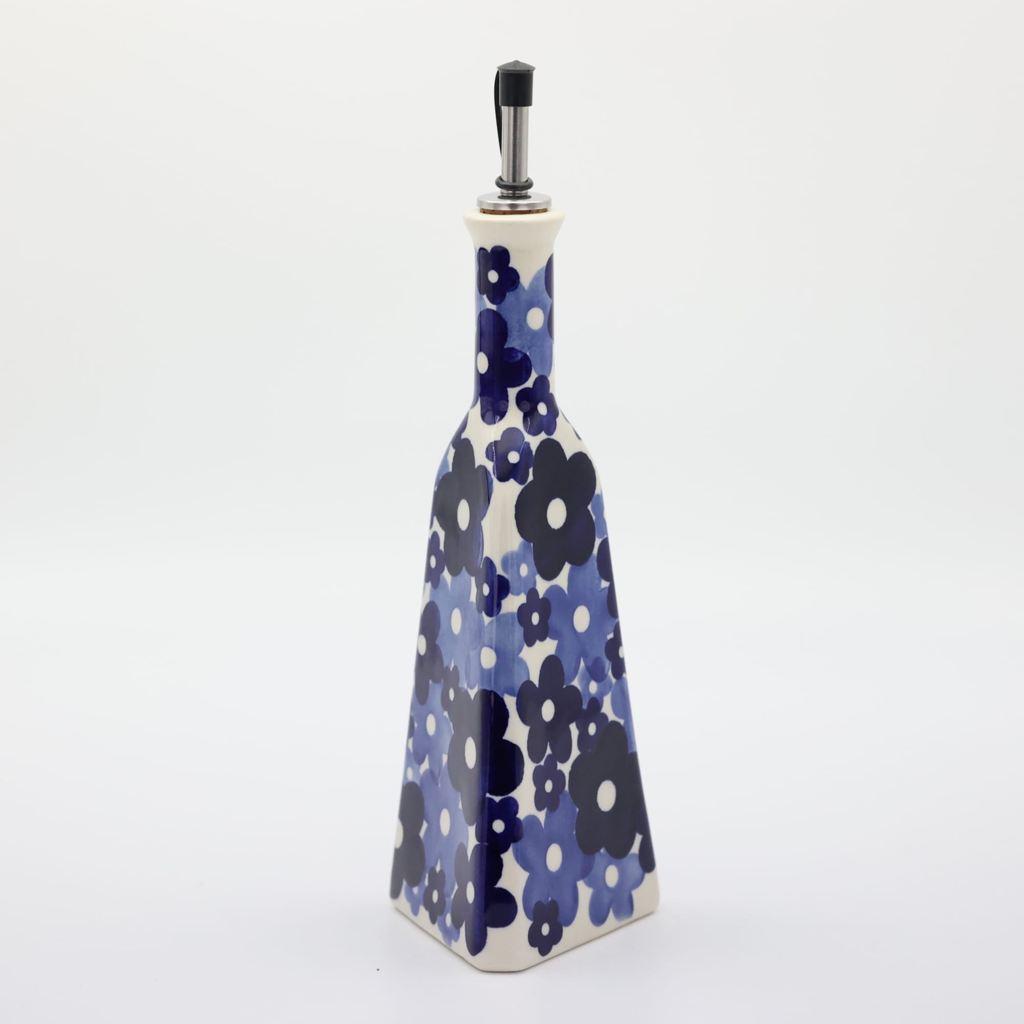 Butelka ceramiczna na oliwę o pojemności 450 ml. Bolesławiecka butelka trójkątna z nalewakiem (dozownikiem).