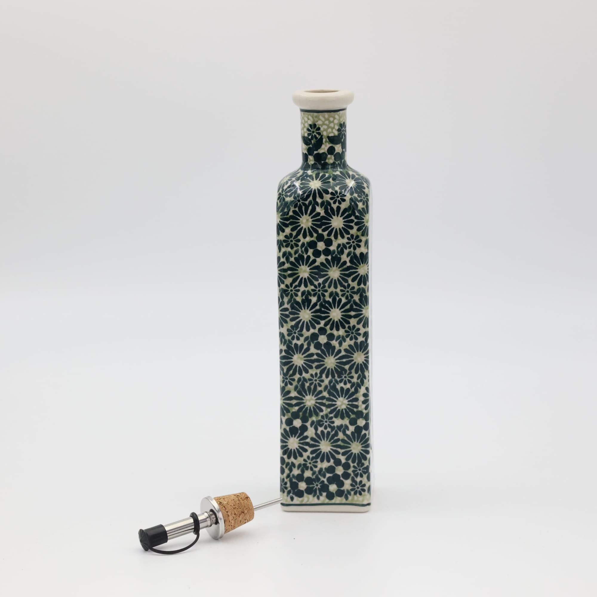 Butelka ceramiczna na oliwę o pojemności 400 ml. Bolesławiecka butelka kwadratowa z nalewakiem (dozownikiem).