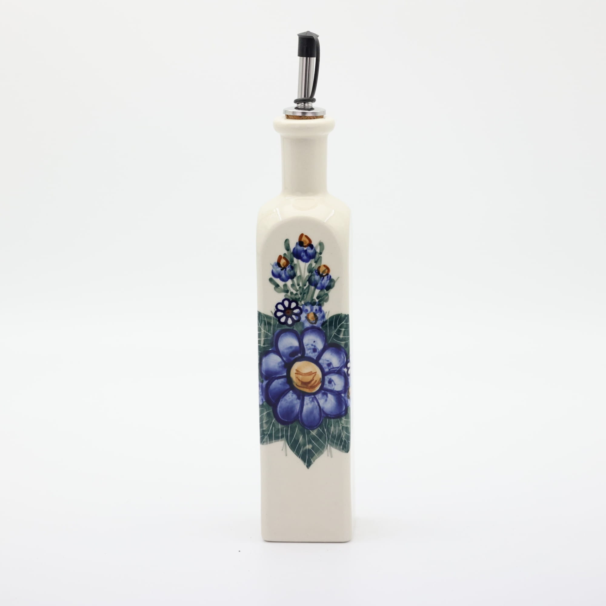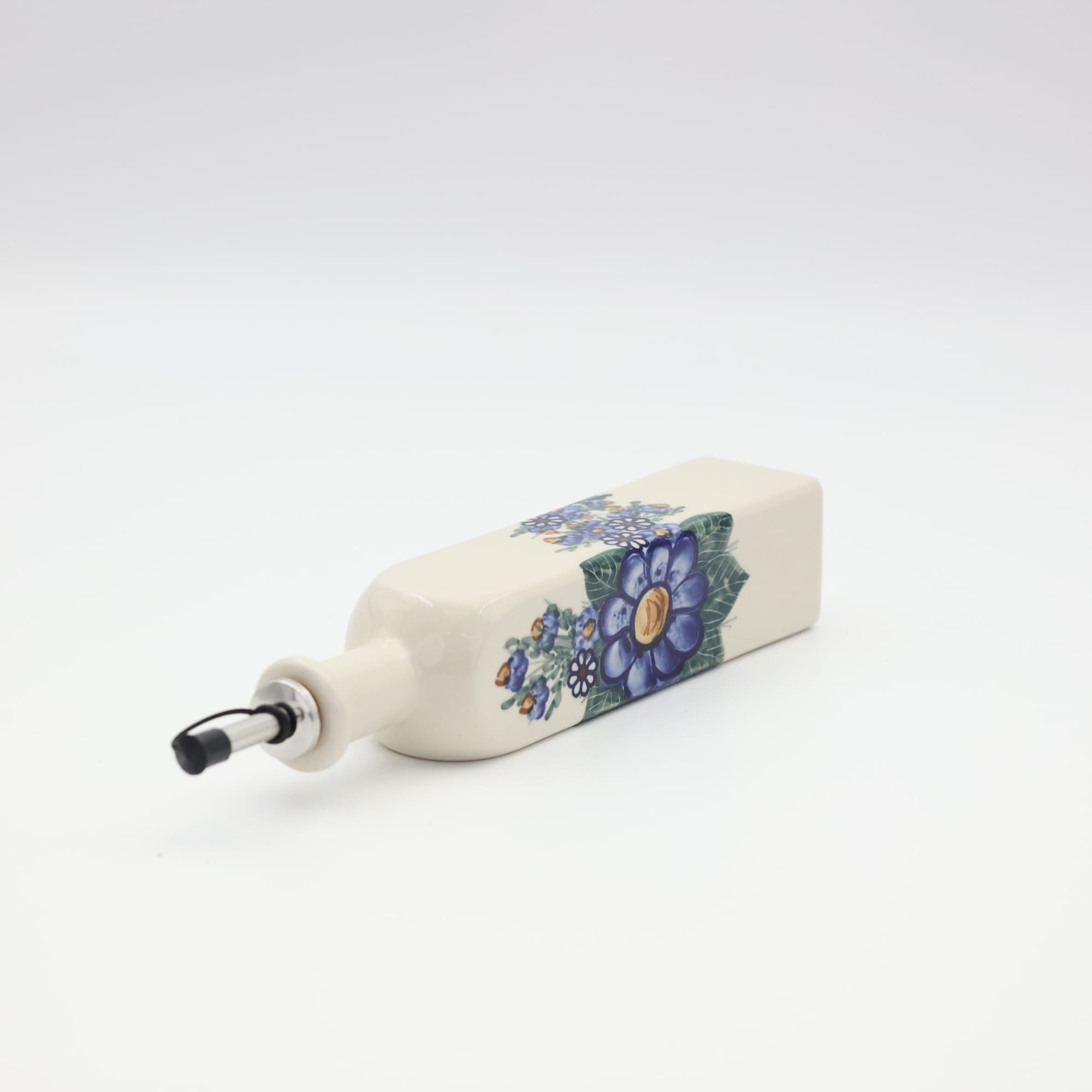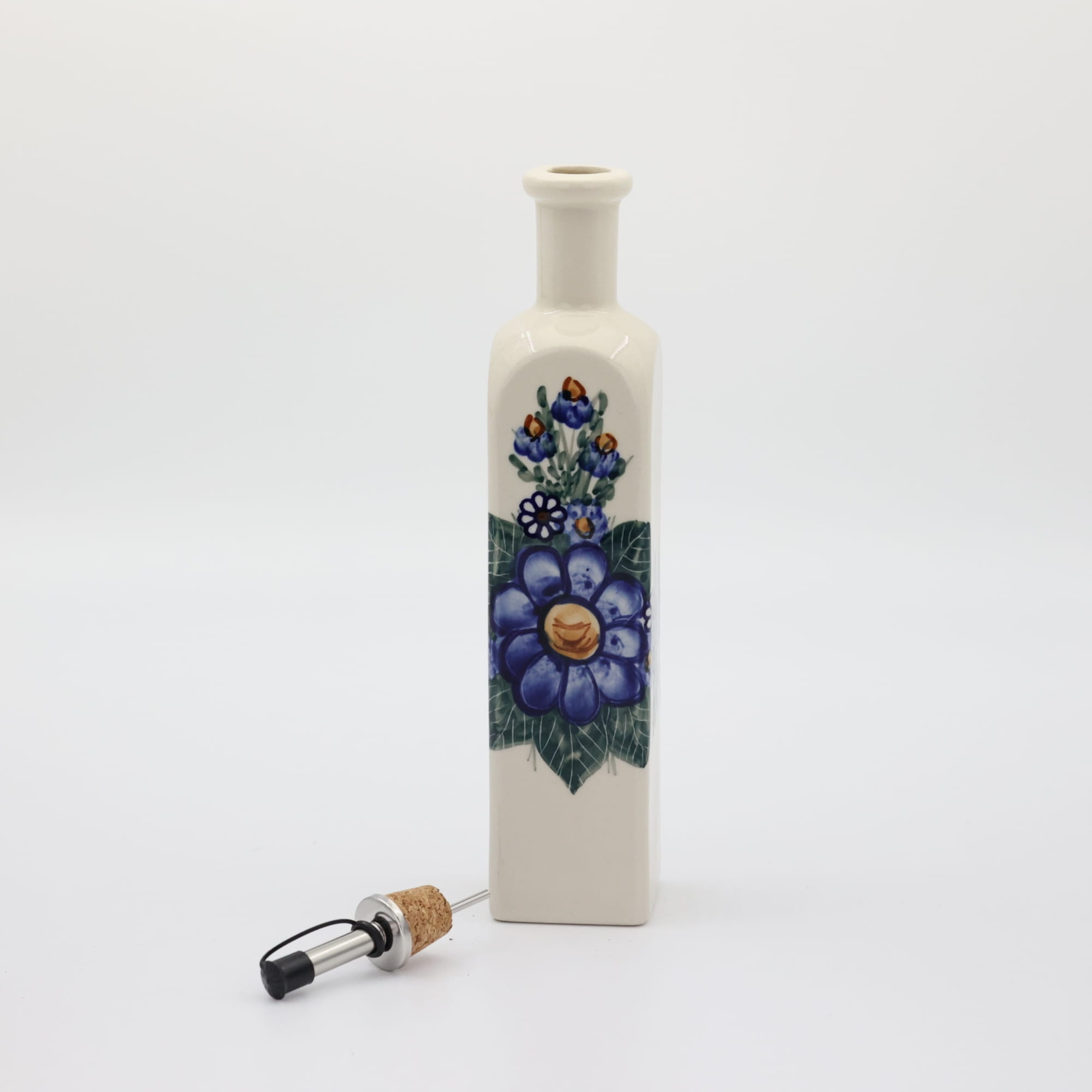 Butelka ceramiczna na oliwę o pojemności 400 ml. Bolesławiecka butelka kwadratowa z nalewakiem (dozownikiem).