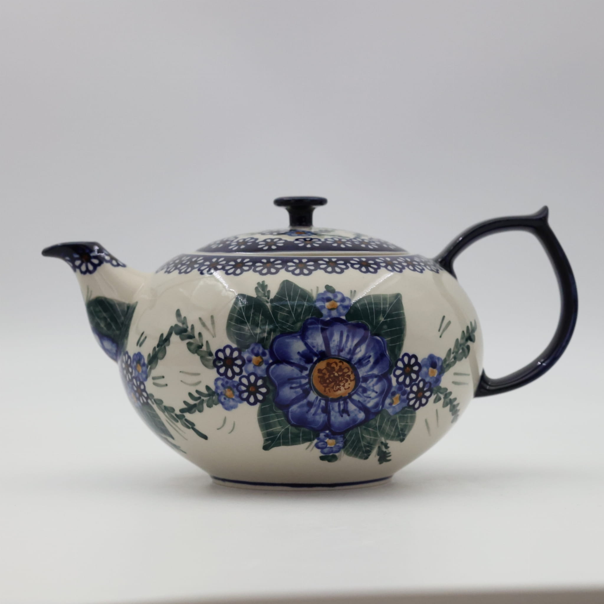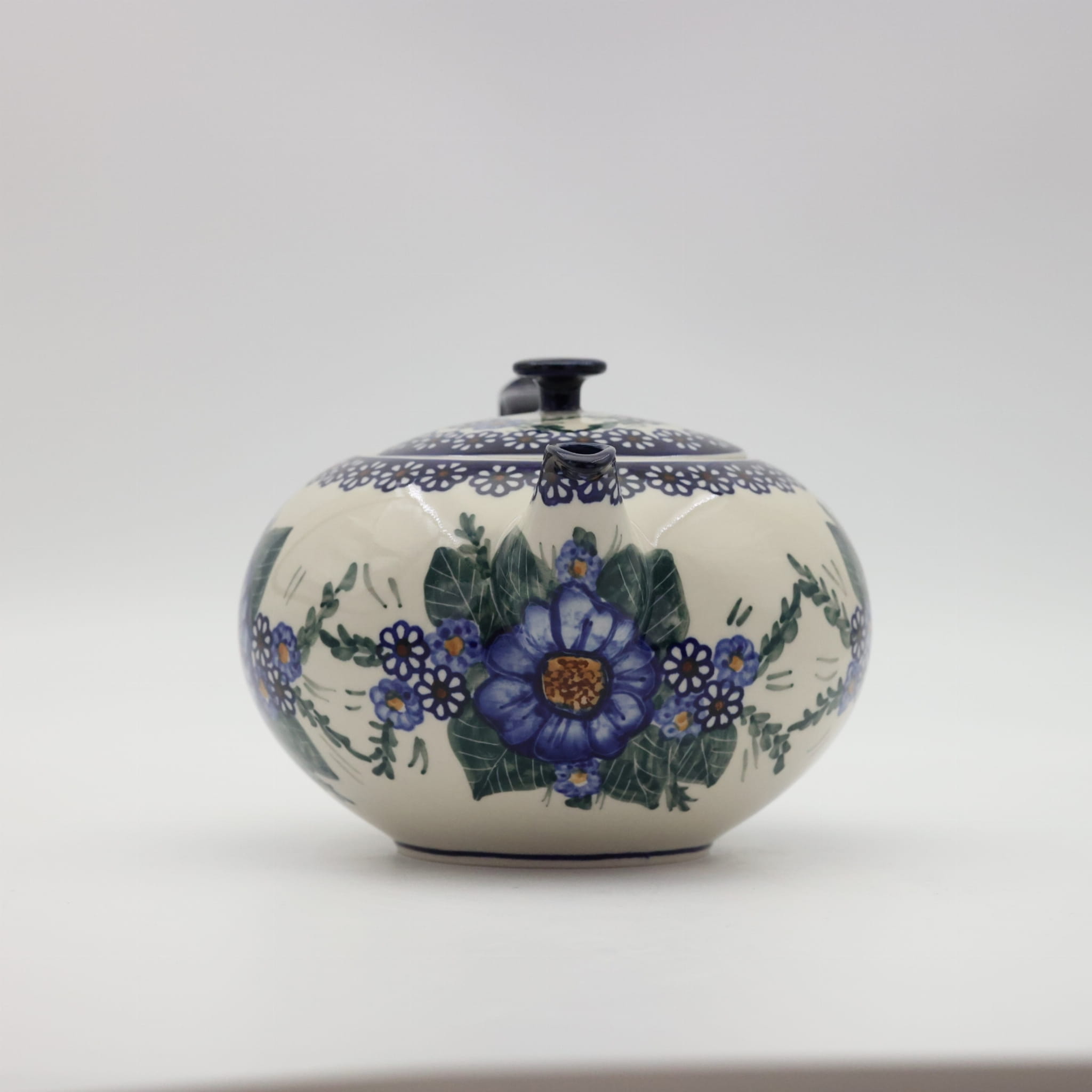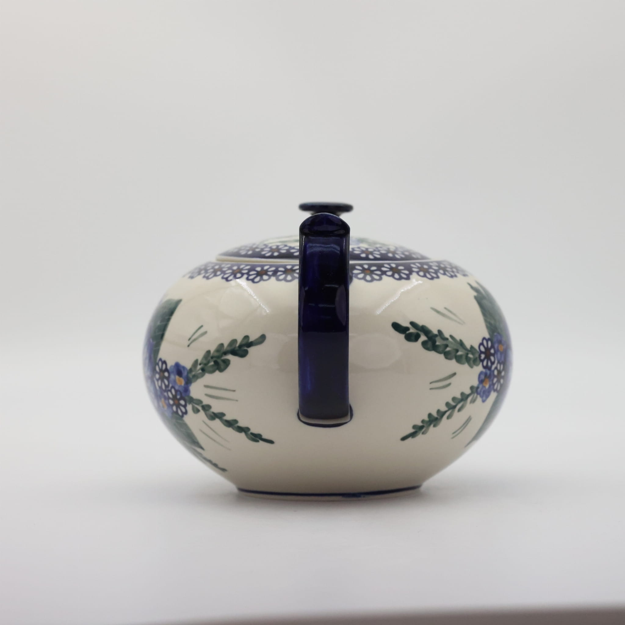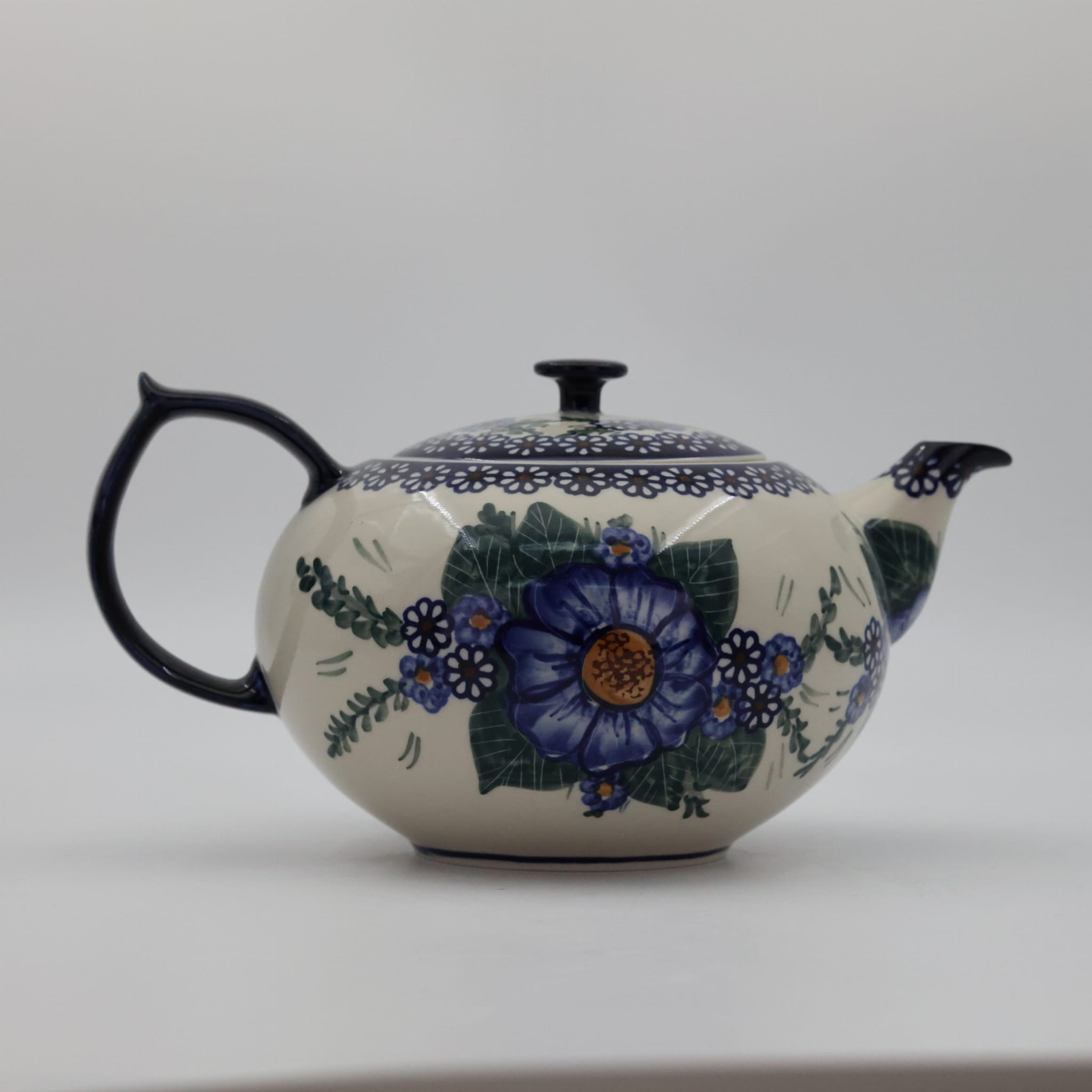 Czajnik doskonale sprawdzi się w codziennym użytkowaniu, pozwalając na eleganckie podawanie herbaty czy naparów. Nie jest przystosowany do podgrzewania na kuchenkach, jednak dzięki właściwościom ceramiki długo utrzymuje temperaturę napoju, co sprawia, że każda chwila przy filiżance herbaty staje się jeszcze bardziej przyjemna. Jego tradycyjny design i unikalne zdobienia czynią go nie tylko praktycznym, ale także dekoracyjnym elementem kuchni. To doskonały wybór dla miłośników rękodzieła oraz idealny prezent dla osób ceniących polską sztukę użytkową i niepowtarzalny styl bolesławieckiej ceramiki.