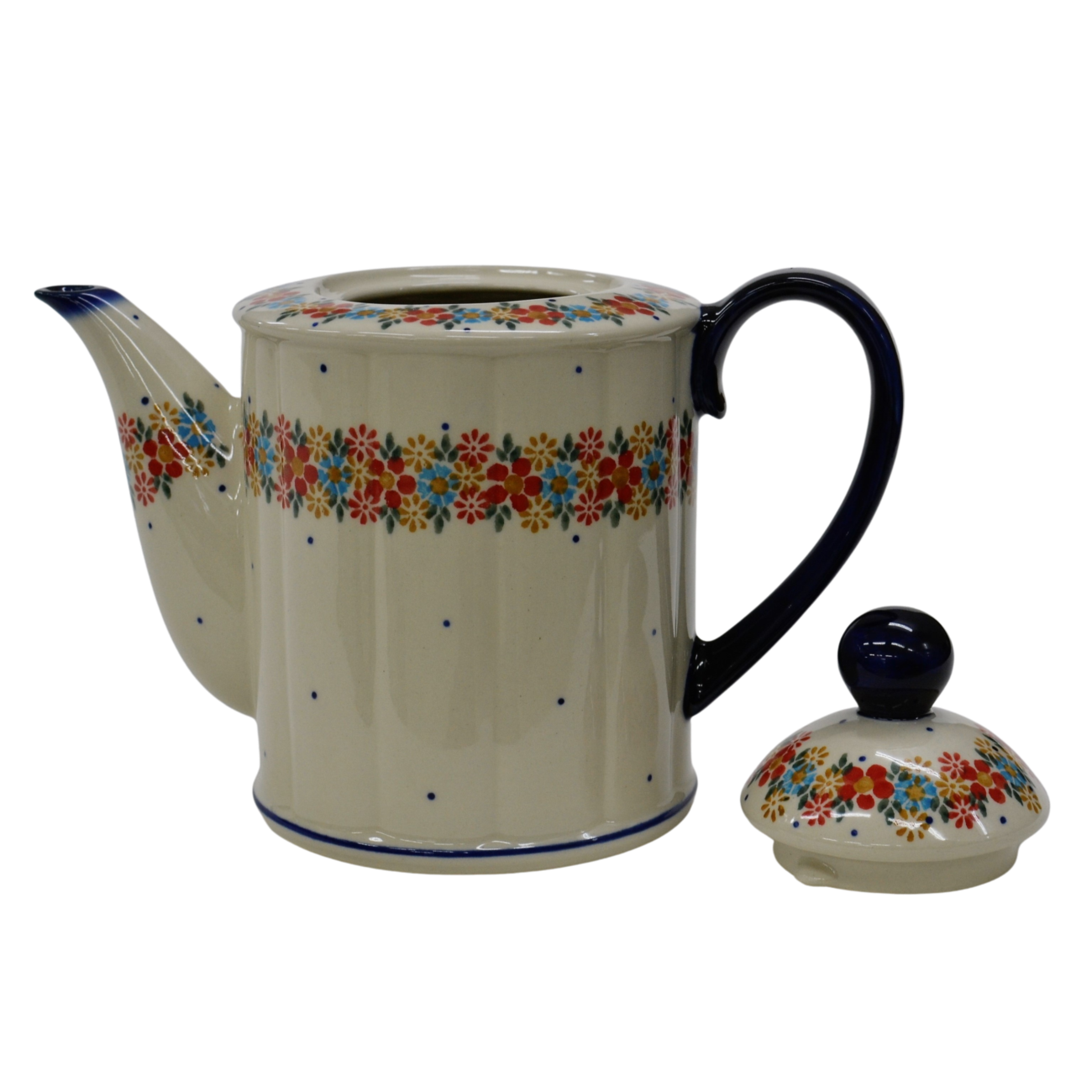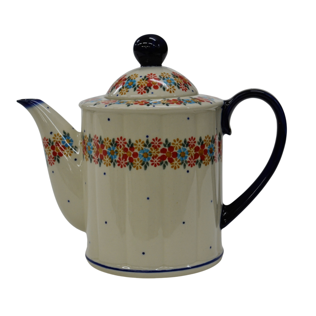 Czajnik bolesławiecki o pojemności 1100 ml, z dużym uchem, które nadaje uroku i ułatwia przenoszenie.