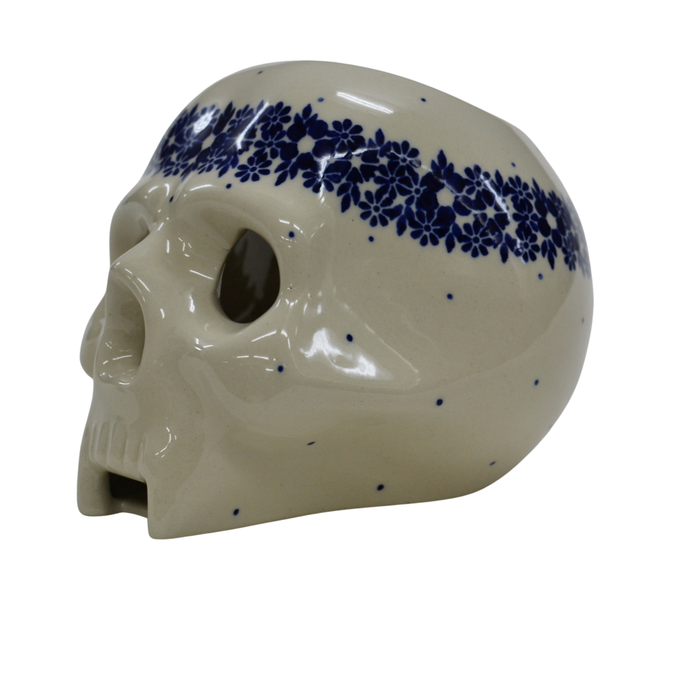 Ceramiczny lampion w kształcie czaszki ludzkiej z wycięciem na świeczkę w tylnej części produktu oraz pojemnikiem (miseczką) w górnej części wyrobu na olejek bądź wosk zapachowy. Podczas podgrzewania świeczką zostają uwolnione zapachy z wcześniej umieszczonych w naczyniu olejków bądź innych substancji wonnych. Produkt jest oryginalnym elementem dekoracji wnętrza pokoju, doskonała ozdoba z okazji Halloween bądź element strasznej dekoracji.