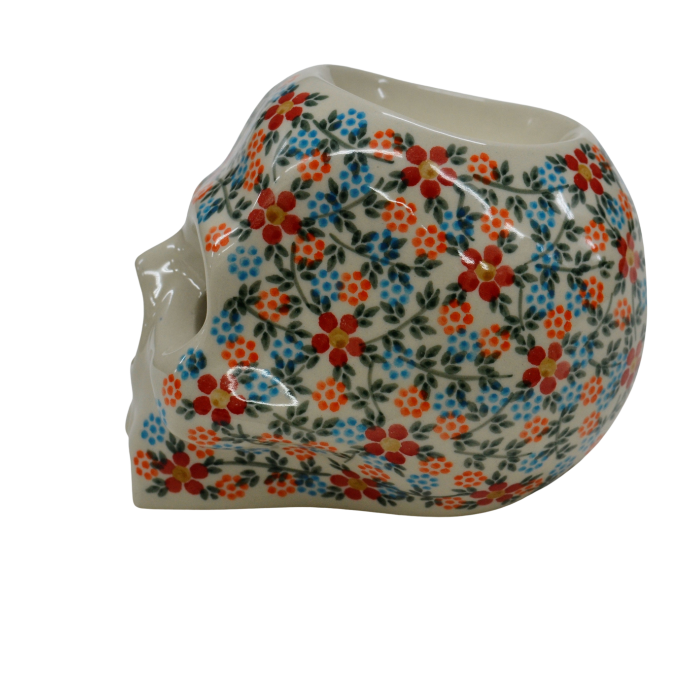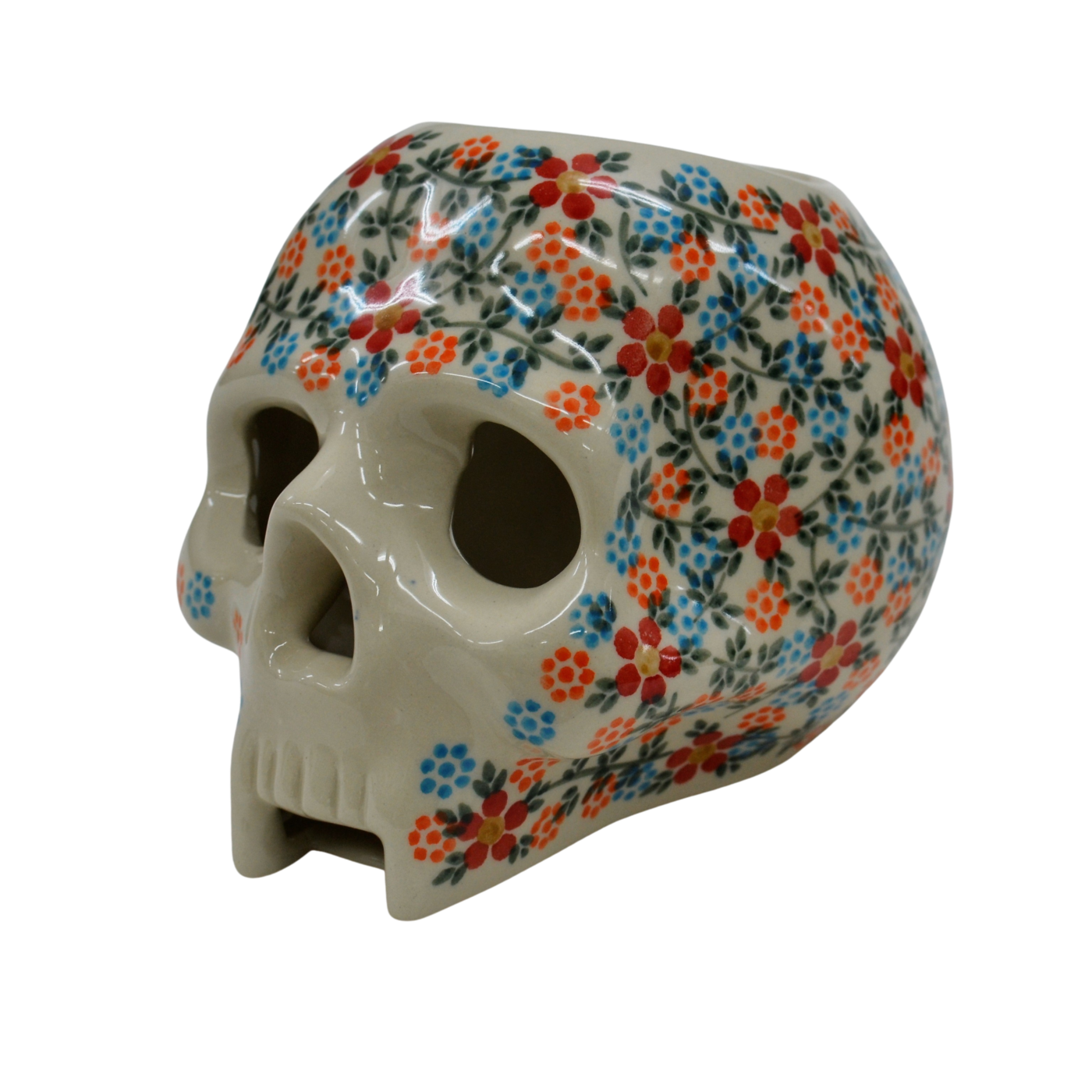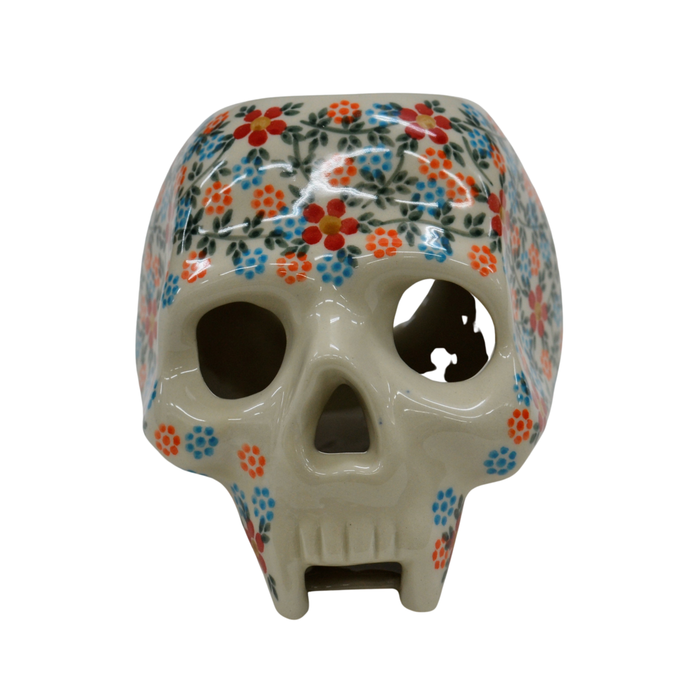 Ceramiczny lampion w kształcie czaszki ludzkiej z wycięciem na świeczkę w tylnej części produktu oraz pojemnikiem (miseczką) w górnej części wyrobu na olejek bądź wosk zapachowy. Podczas podgrzewania świeczką zostają uwolnione zapachy z wcześniej umieszczonych w naczyniu olejków bądź innych substancji wonnych. Produkt jest oryginalnym elementem dekoracji wnętrza pokoju, doskonała ozdoba z okazji Halloween bądź element strasznej dekoracji.