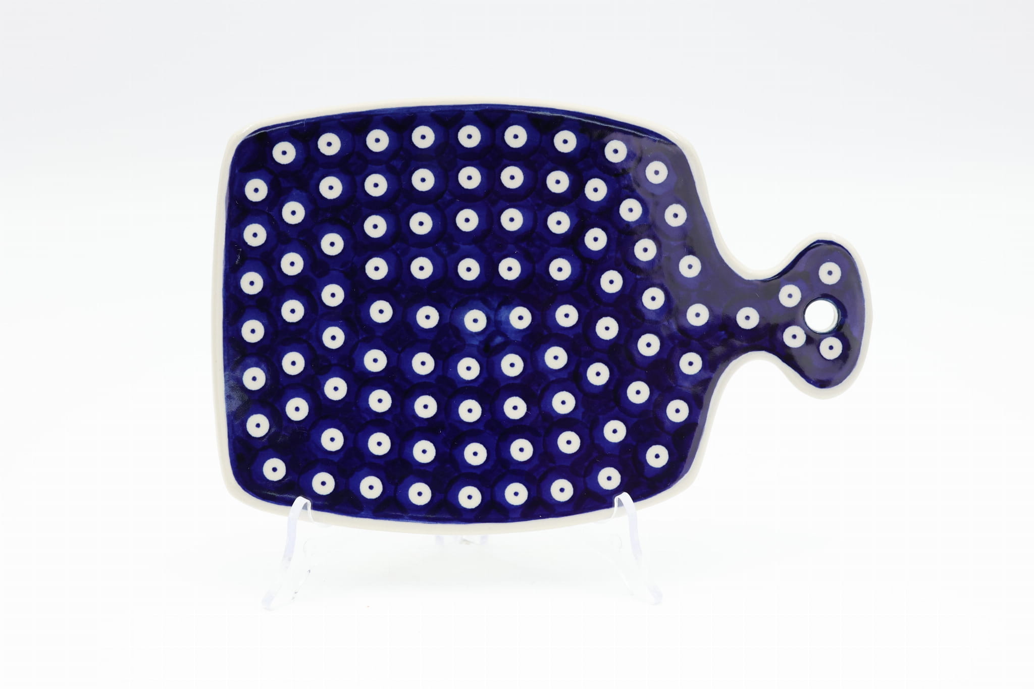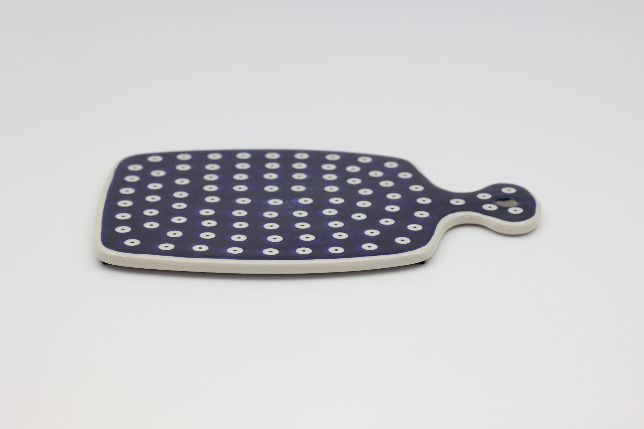 Rewelacyjnie prezentuje się jako dekoracja ściany, pozwalają na to śliczne wzory kwiatowe czy zdobiny tradycyjne, stempelkowe charakterystyczne dla ceramiki kamionkowej z Bolesławca. Wielkość deski pozwala do wykorzystania jej jako podkładkę pod gorące patelnie, garnki czy naczynia do zapiekania ceramiczne bądź klasyczne żaroodporne i metalowe, których każda gospodyni czy kucharz w swoich szafkach kuchennych posiadają tuziny.