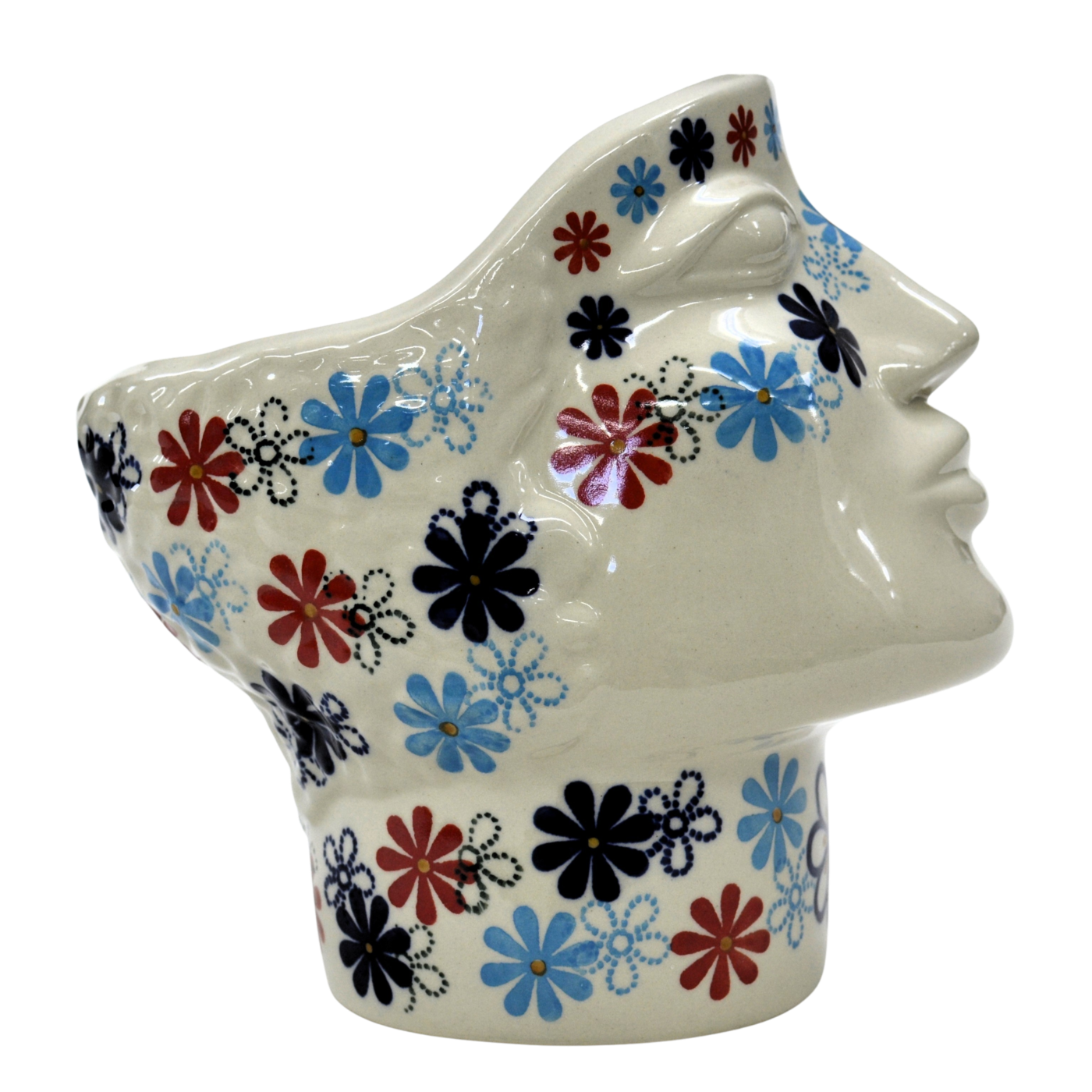 Przedstawiamy prawdziwy hit wśród produktów do dekoracji domów i ogrodów, jest nim ceramiczna doniczka (osłonka) w kształcie głowy. Donica ceramiczna jest ręcznie malowana w zakładzie ceramiki bolesławieckiej, ANDY Ceramika. Szkliwiona wewnątrz i na zewnątrz.