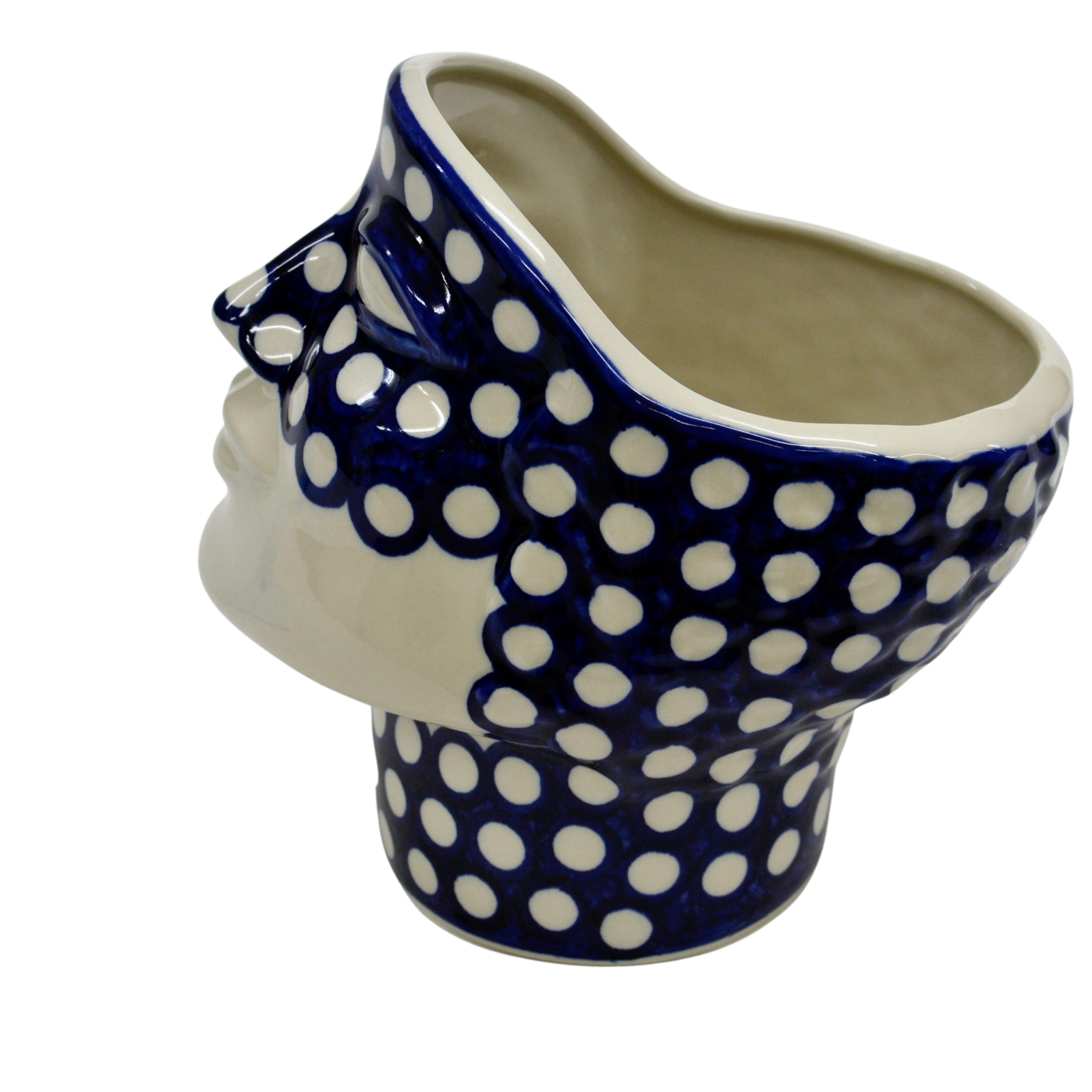 Przedstawiamy prawdziwy hit wśród produktów do dekoracji domów i ogrodów, jest nim ceramiczna doniczka (osłonka) w kształcie głowy. Donica ceramiczna jest ręcznie malowana w zakładzie ceramiki bolesławieckiej, ANDY Ceramika. Szkliwiona wewnątrz i na zewnątrz.