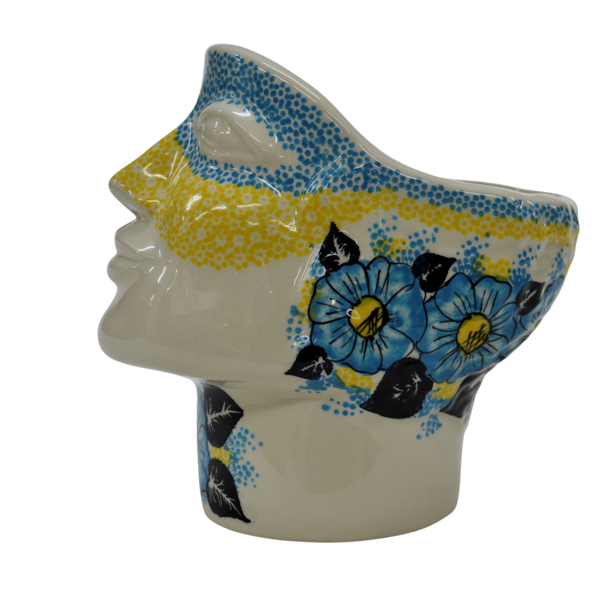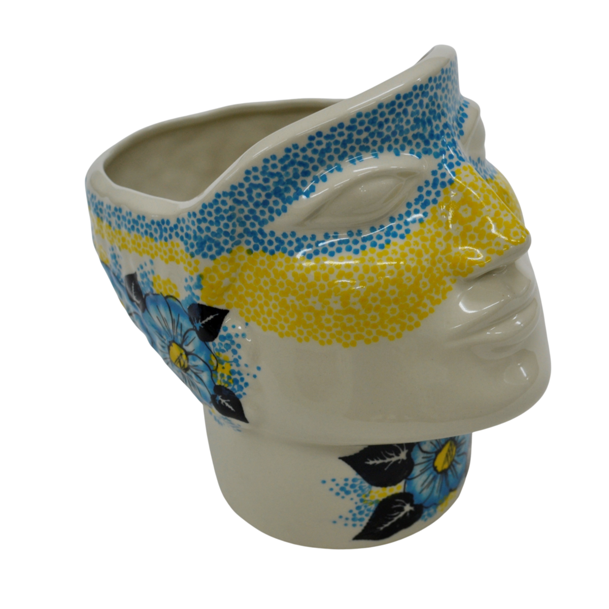 Przedstawiamy prawdziwy hit wśród produktów do dekoracji domów i ogrodów, jest nim ceramiczna doniczka (osłonka) w kształcie głowy. Donica ceramiczna jest ręcznie malowana w zakładzie ceramiki bolesławieckiej, ANDY Ceramika. Szkliwiona wewnątrz i na zewnątrz.