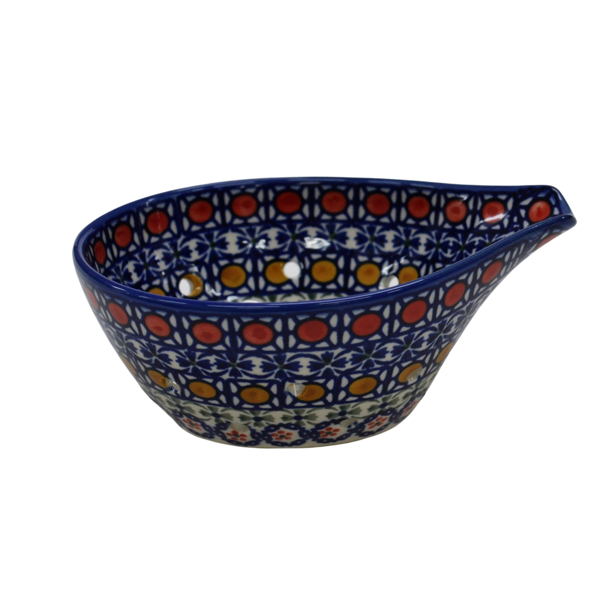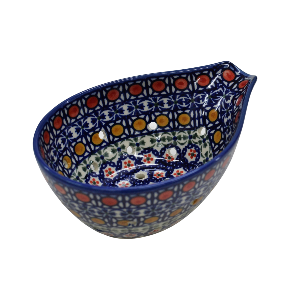 Poręczny i niezwykle funkcjonalne naczynie z Bolesławca - durszlak, cedzak ceramiczny.