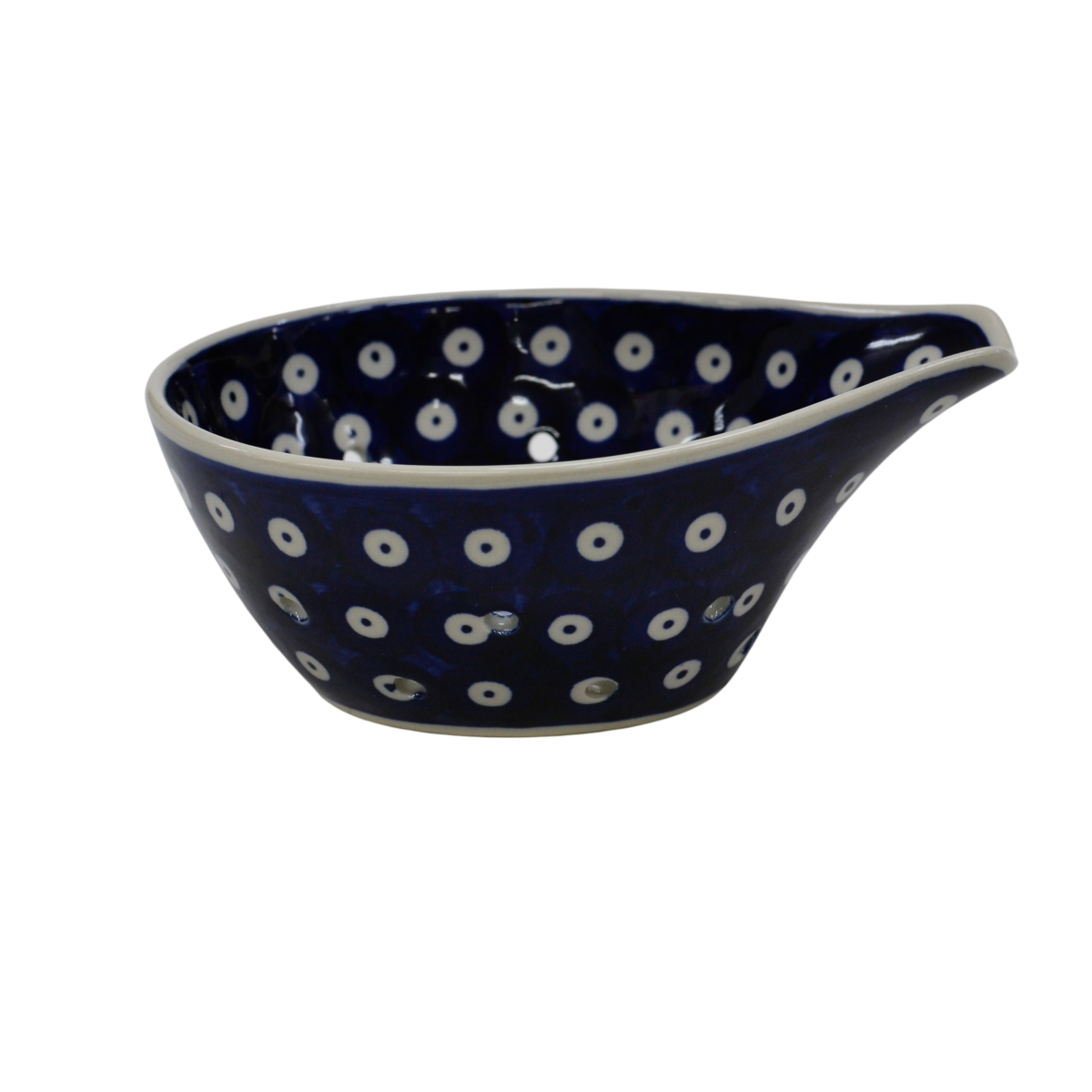 Poręczny i niezwykle funkcjonalne naczynie z Bolesławca - durszlak, cedzak ceramiczny.