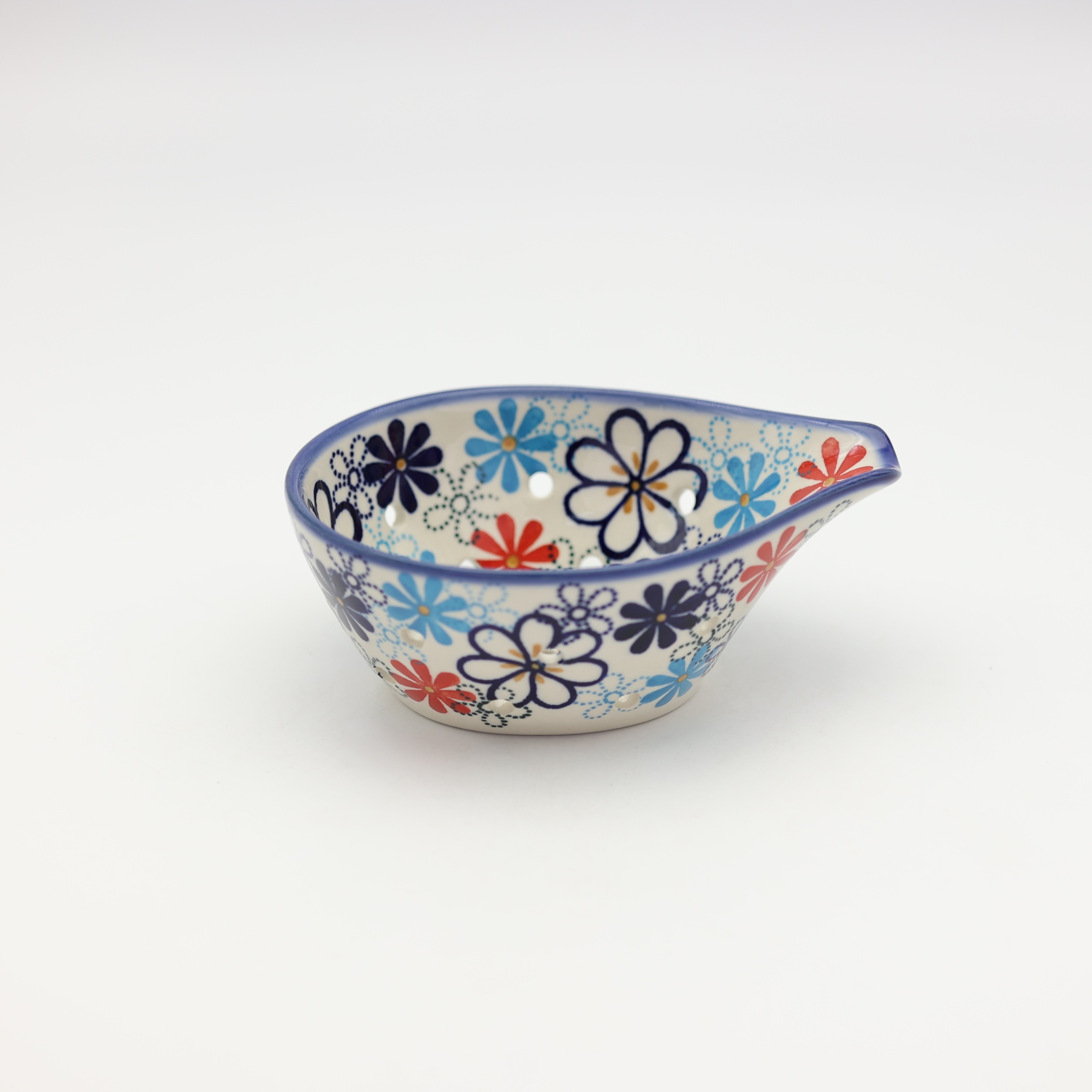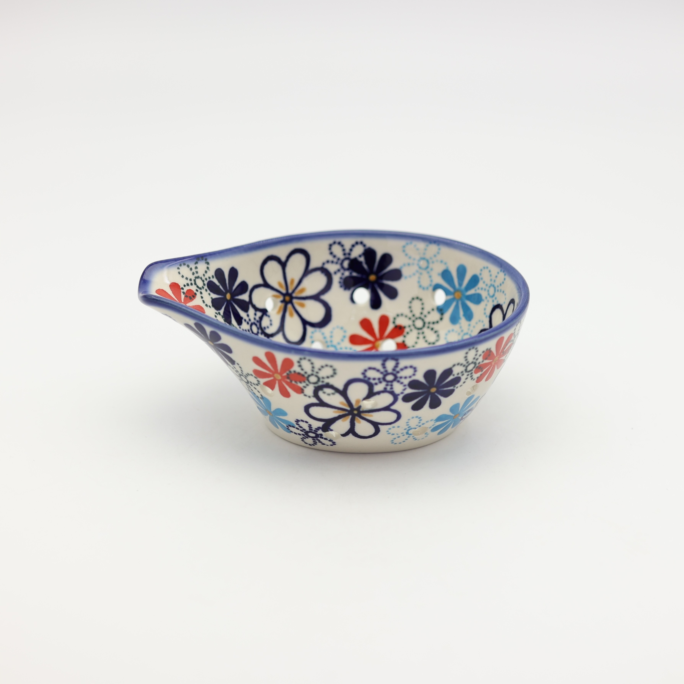 Poręczny i niezwykle funkcjonalne naczynie z Bolesławca - durszlak, cedzak ceramiczny.