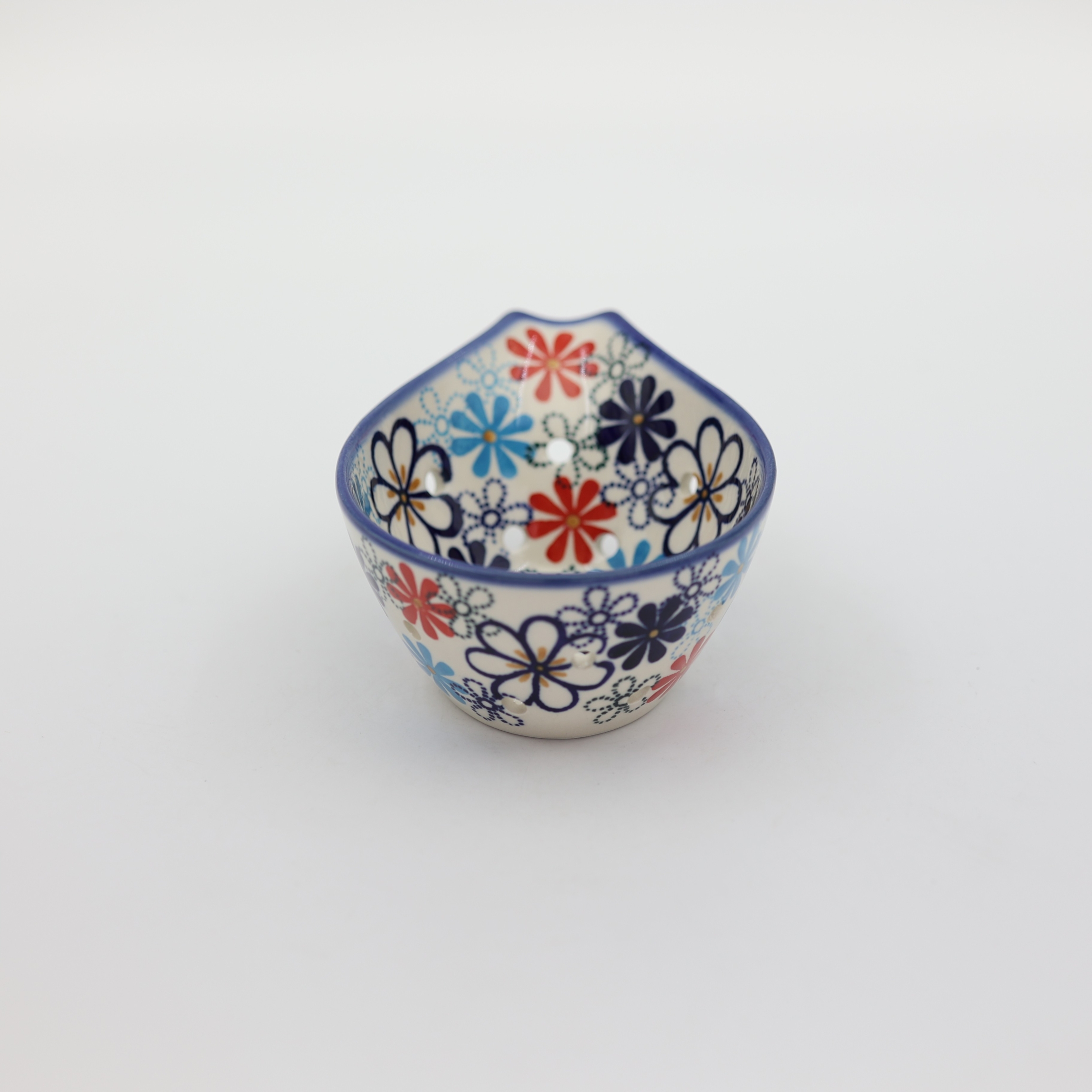 Ręcznie zdobiony w tradycyjne, podszkliwne zdobienia charakterystyczne dla ceramiki artystycznej z Bolesławca.