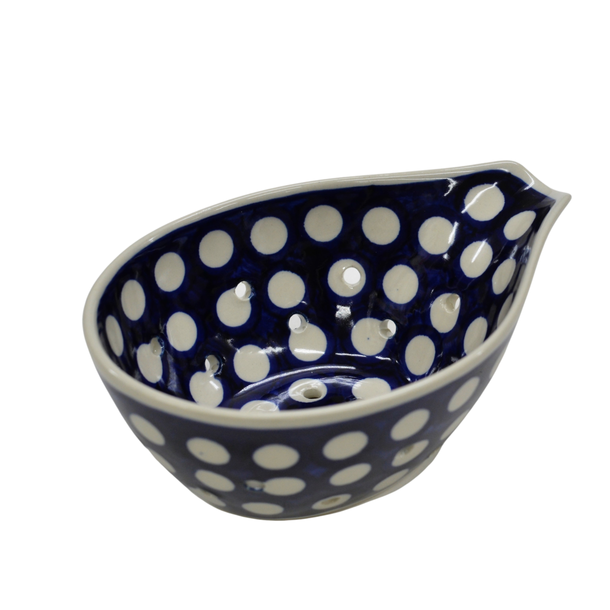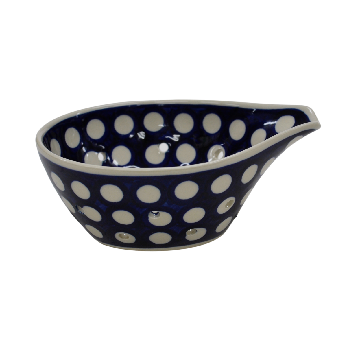 Poręczny i niezwykle funkcjonalne naczynie z Bolesławca - durszlak, cedzak ceramiczny.