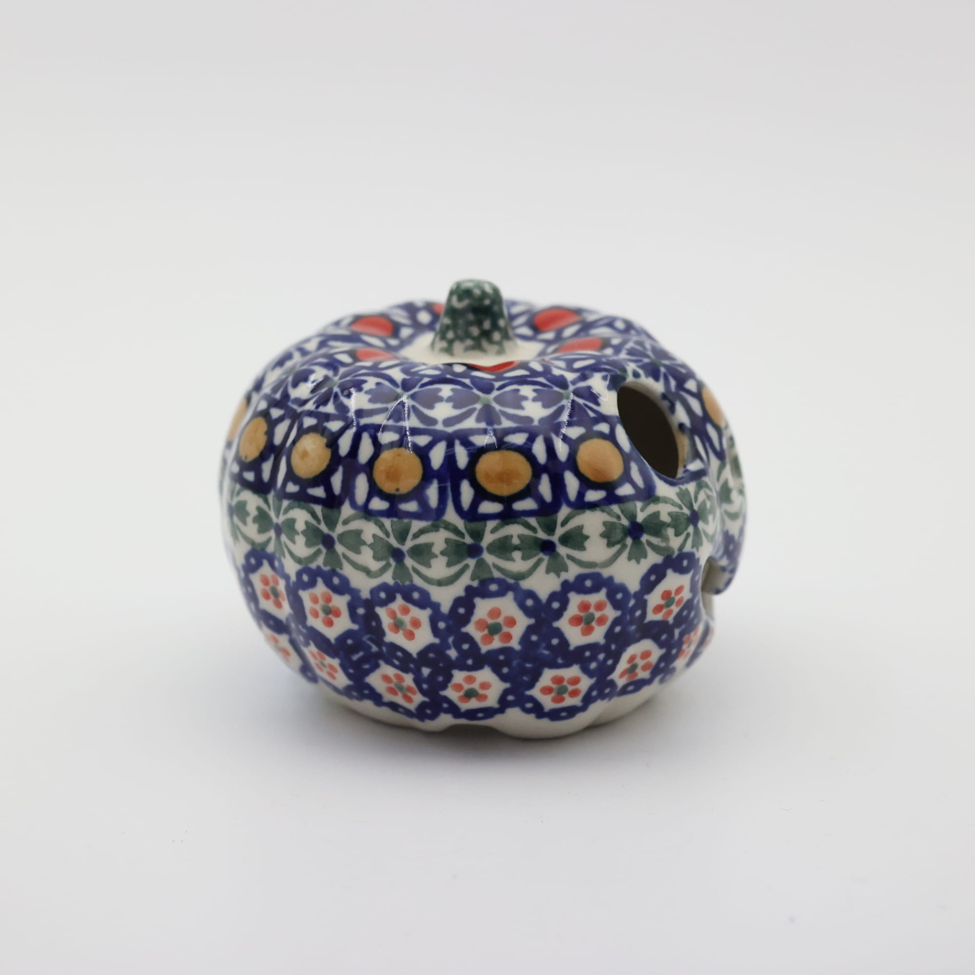 Ozdobna dynia ceramiczna o imieniu Baby Boo (lampion ceramiczny), ręcznie malowana ceramika bolesławiecka to doskonały element dekoracyjny do każdego ogrodu, tarasu lub wnętrza Twojego domu, podczas celebrowania Halloween bądź w okresie jesiennym, kiedy to liście lecą z drzew, roślinność obumiera a nasze śliczne ręcznie wykonane zdobienia ceramiki artystycznej nadają charakteru wystroju Twojego domu.