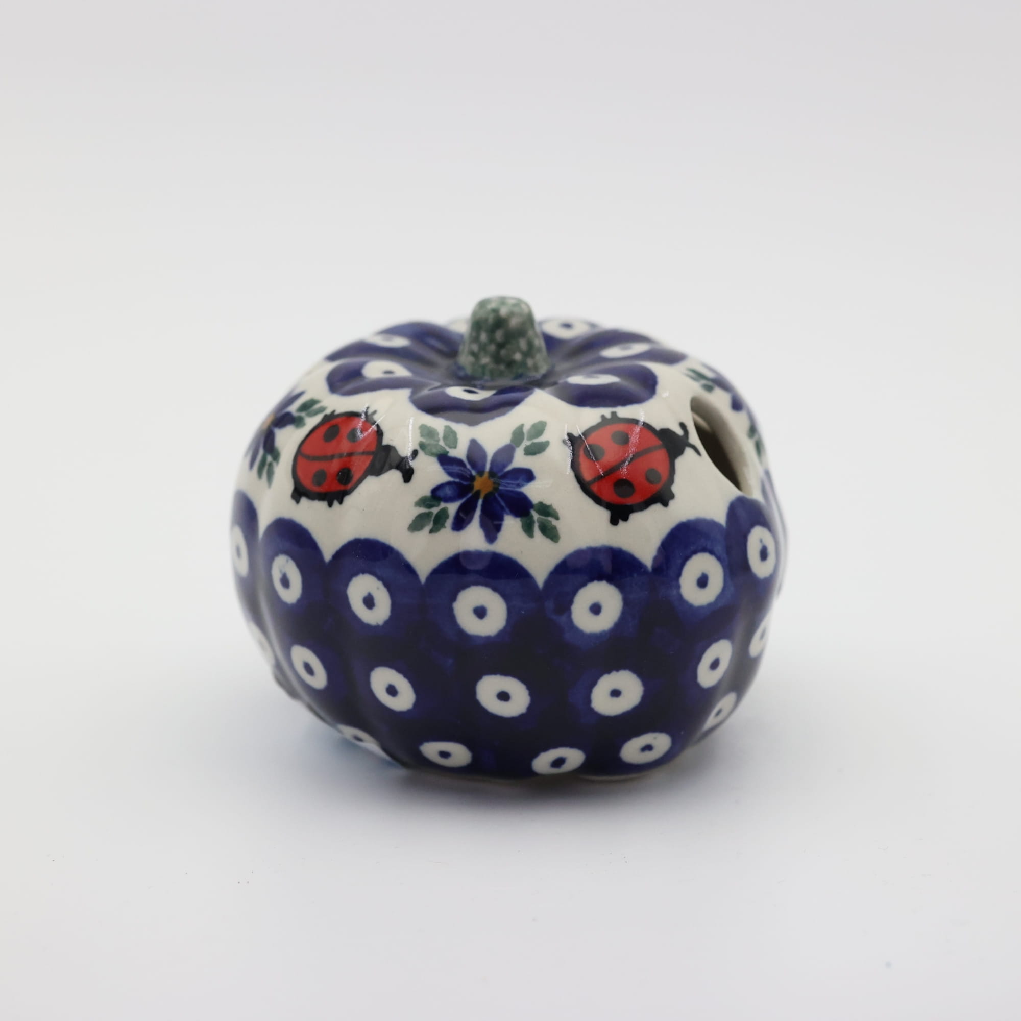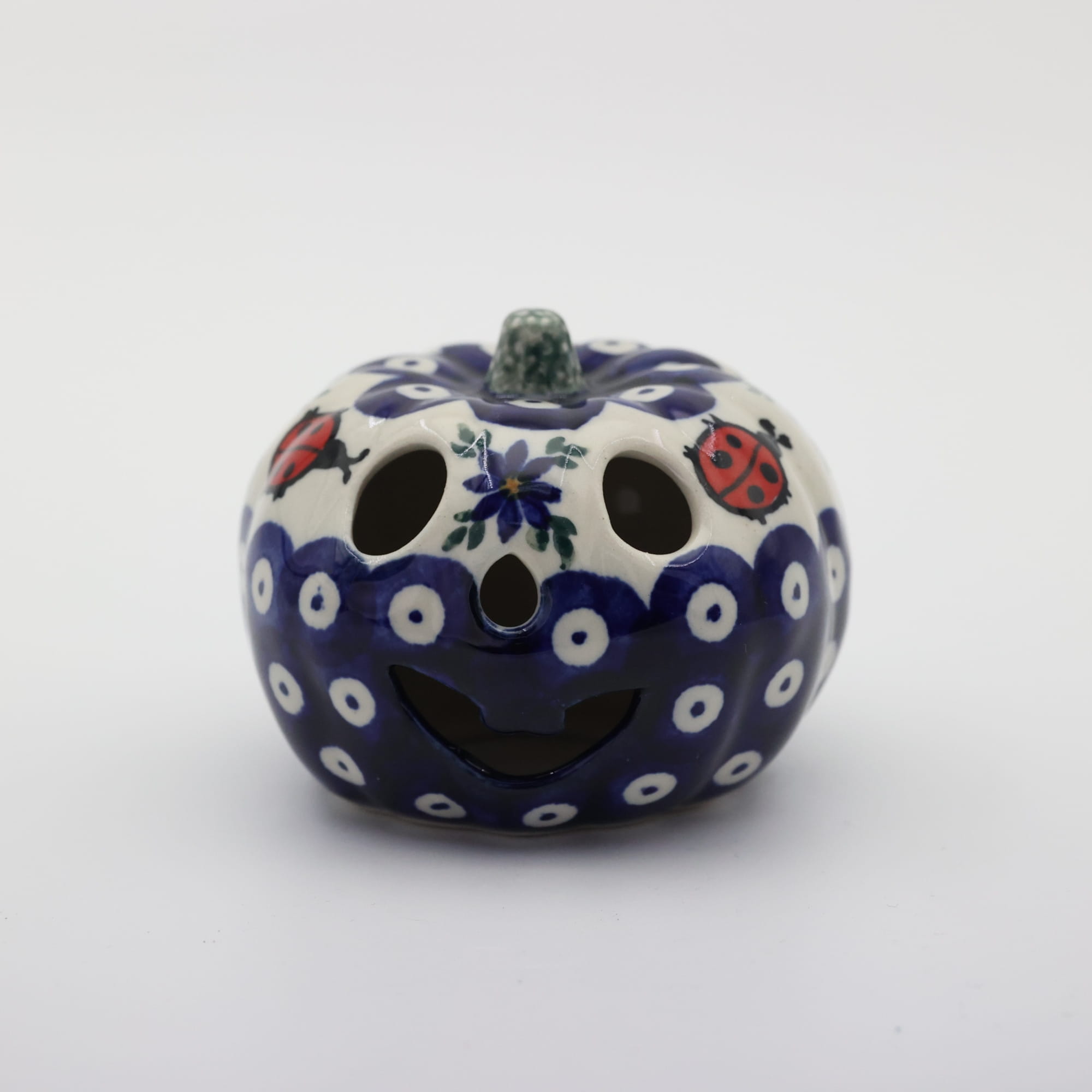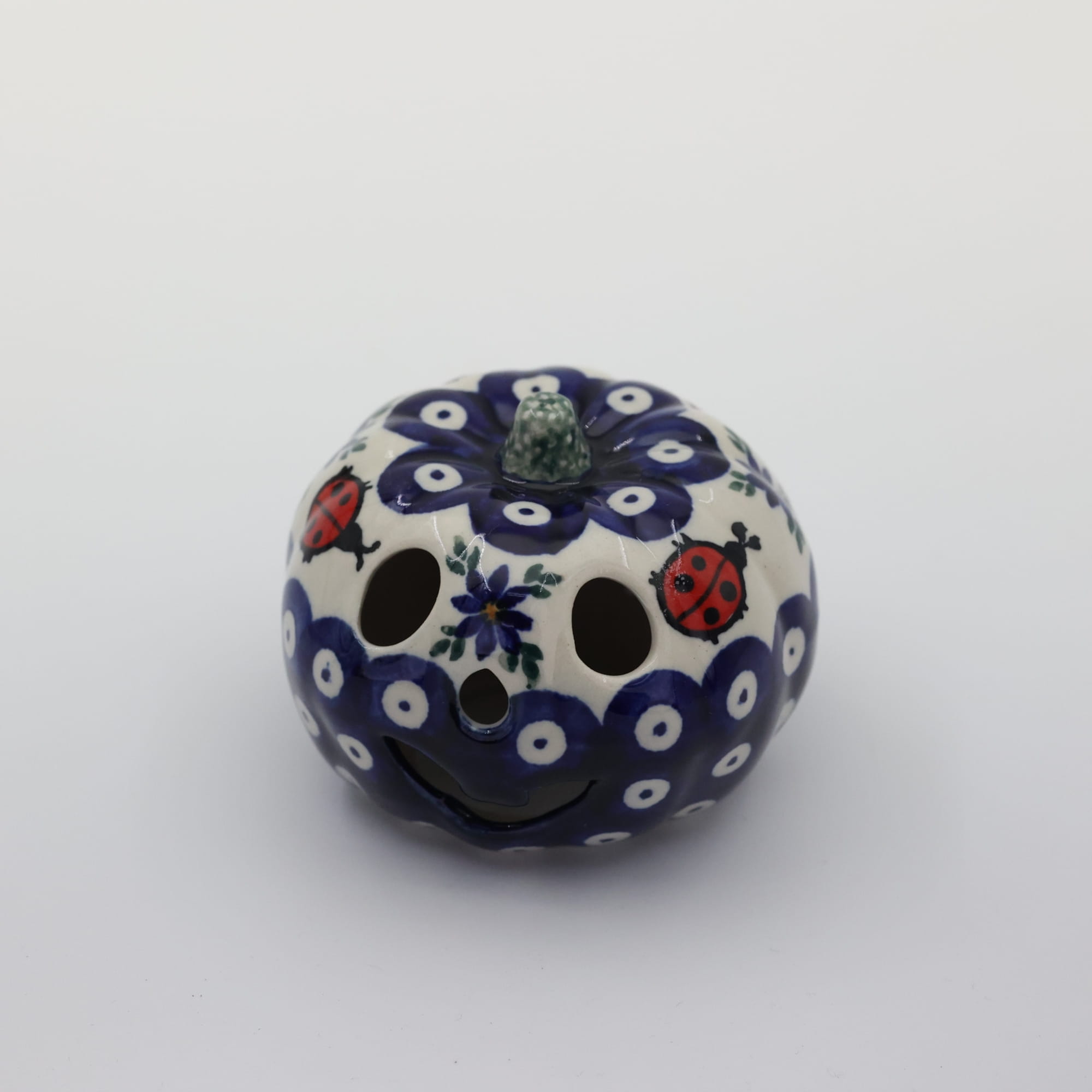 Ozdobna dynia ceramiczna o imieniu Baby Boo (lampion ceramiczny), ręcznie malowana ceramika bolesławiecka to doskonały element dekoracyjny do każdego ogrodu, tarasu lub wnętrza Twojego domu, podczas celebrowania Halloween bądź w okresie jesiennym, kiedy to liście lecą z drzew, roślinność obumiera a nasze śliczne ręcznie wykonane zdobienia ceramiki artystycznej nadają charakteru wystroju Twojego domu.