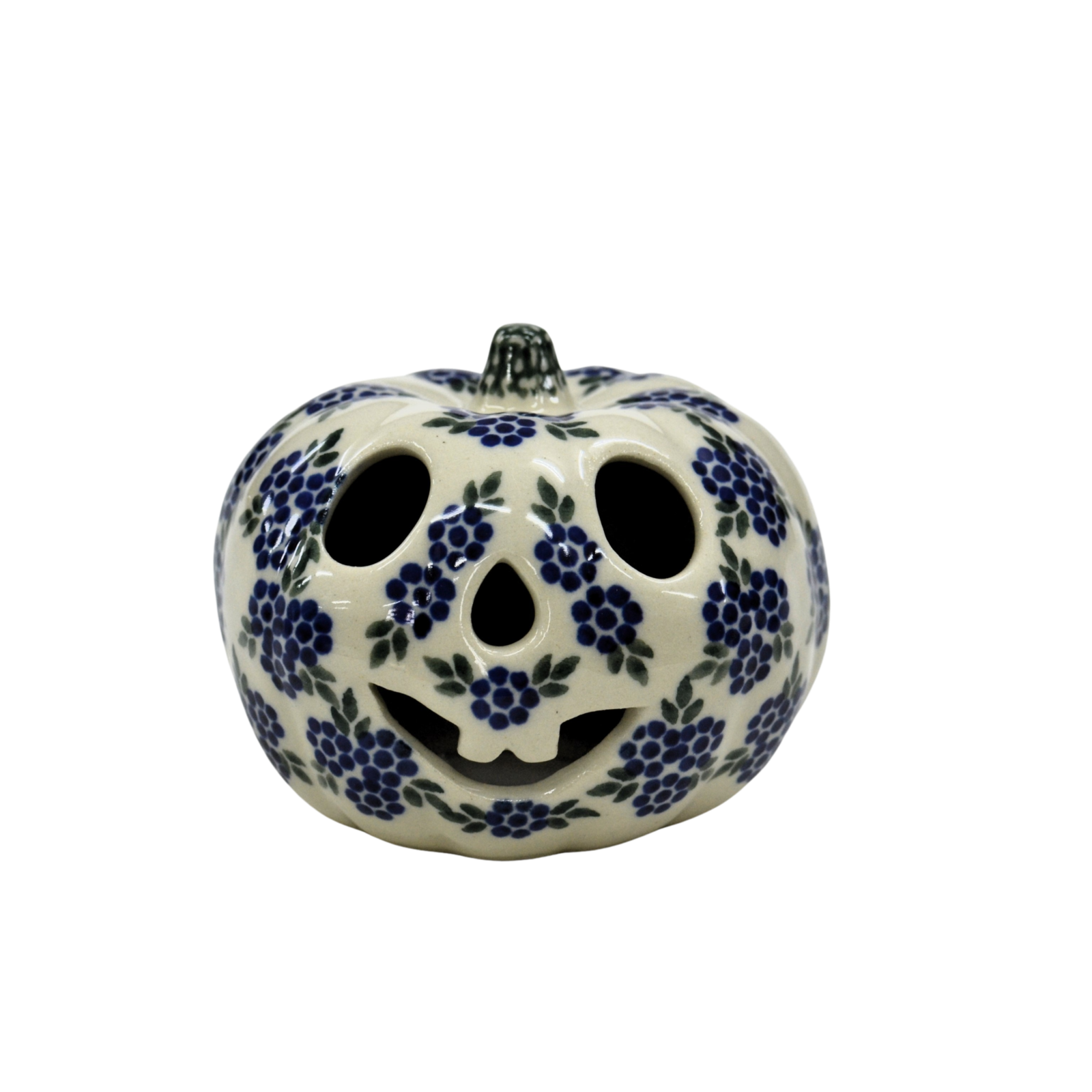 Ozdobna dynia ceramiczna o imieniu Baby Boo (lampion ceramiczny), ręcznie malowana ceramika bolesławiecka to doskonały element dekoracyjny do każdego ogrodu, tarasu lub wnętrza Twojego domu, podczas celebrowania Halloween bądź w okresie jesiennym, kiedy to liście lecą z drzew, roślinność obumiera a nasze śliczne ręcznie wykonane zdobienia ceramiki artystycznej nadają charakteru wystroju Twojego domu.