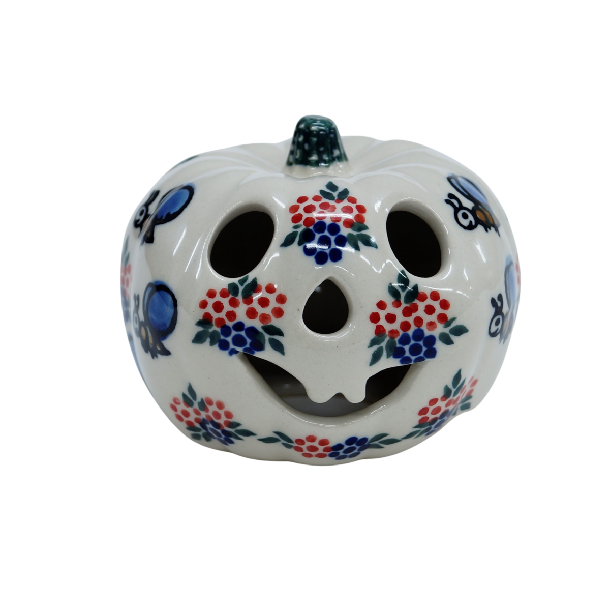 Ozdobna dynia ceramiczna o imieniu Baby Boo (lampion ceramiczny), ręcznie malowana ceramika bolesławiecka to doskonały element dekoracyjny do każdego ogrodu, tarasu lub wnętrza Twojego domu, podczas celebrowania Halloween bądź w okresie jesiennym, kiedy to liście lecą z drzew, roślinność obumiera a nasze śliczne ręcznie wykonane zdobienia ceramiki artystycznej nadają charakteru wystroju Twojego domu.
