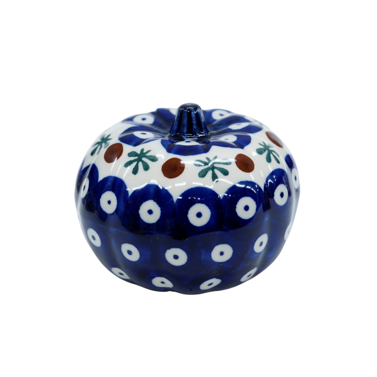 Ozdobna dynia ceramiczna o imieniu Baby Boo (lampion ceramiczny), ręcznie malowana ceramika bolesławiecka to doskonały element dekoracyjny do każdego ogrodu, tarasu lub wnętrza Twojego domu, podczas celebrowania Halloween bądź w okresie jesiennym, kiedy to liście lecą z drzew, roślinność obumiera a nasze śliczne ręcznie wykonane zdobienia ceramiki artystycznej nadają charakteru wystroju Twojego domu.