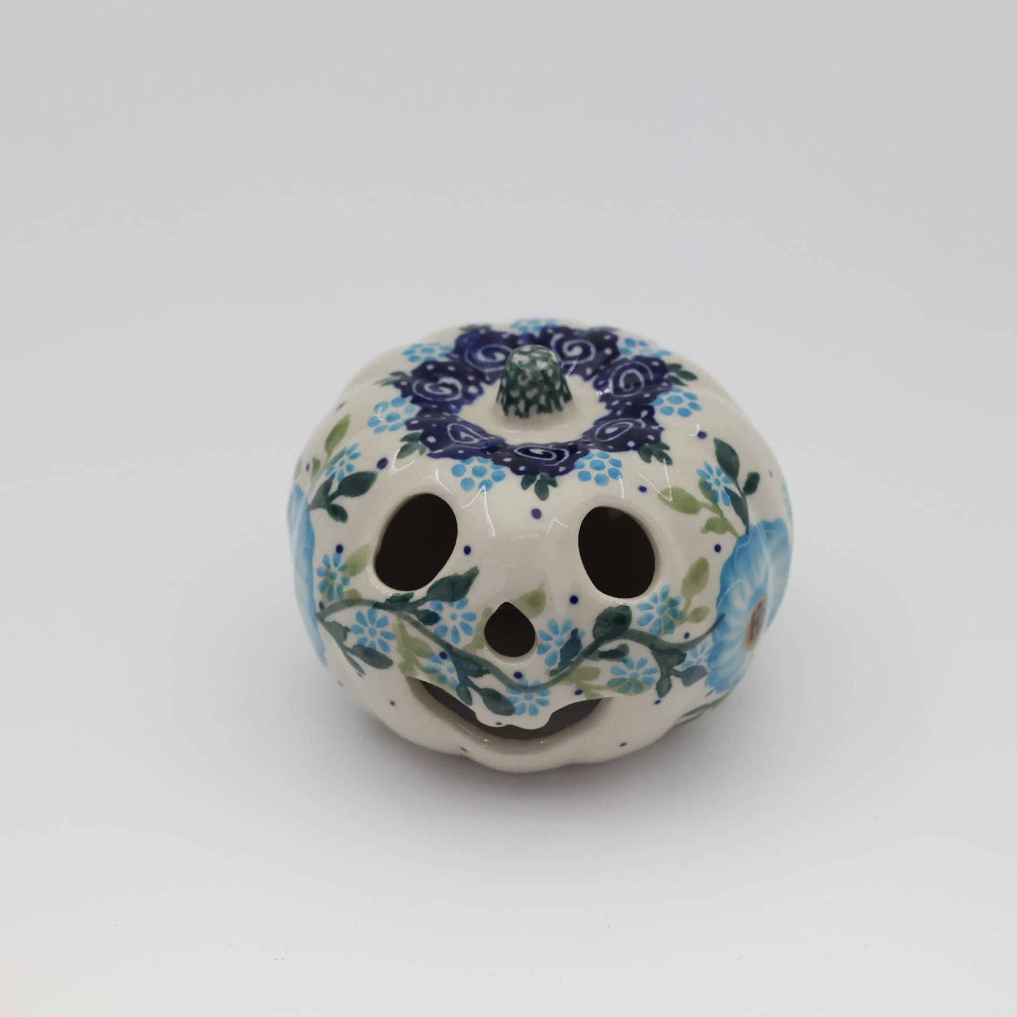 Ozdobna dynia ceramiczna o imieniu Baby Boo (lampion ceramiczny), ręcznie malowana ceramika bolesławiecka to doskonały element dekoracyjny do każdego ogrodu, tarasu lub wnętrza Twojego domu, podczas celebrowania Halloween bądź w okresie jesiennym, kiedy to liście lecą z drzew, roślinność obumiera a nasze śliczne ręcznie wykonane zdobienia ceramiki artystycznej nadają charakteru wystroju Twojego domu.