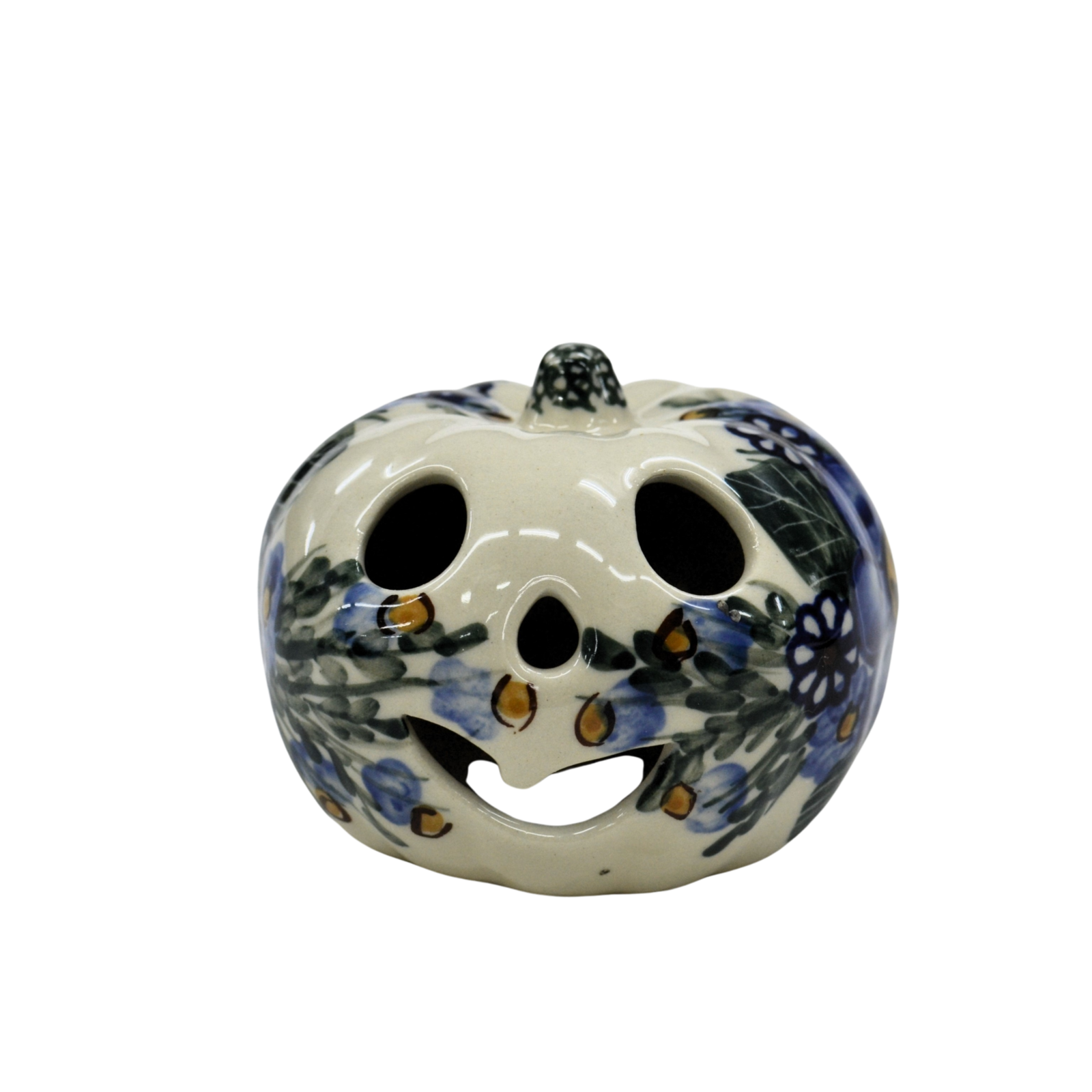 Ozdobna dynia ceramiczna o imieniu Baby Boo (lampion ceramiczny), ręcznie malowana ceramika bolesławiecka to doskonały element dekoracyjny do każdego ogrodu, tarasu lub wnętrza Twojego domu, podczas celebrowania Halloween bądź w okresie jesiennym, kiedy to liście lecą z drzew, roślinność obumiera a nasze śliczne ręcznie wykonane zdobienia ceramiki artystycznej nadają charakteru wystroju Twojego domu.