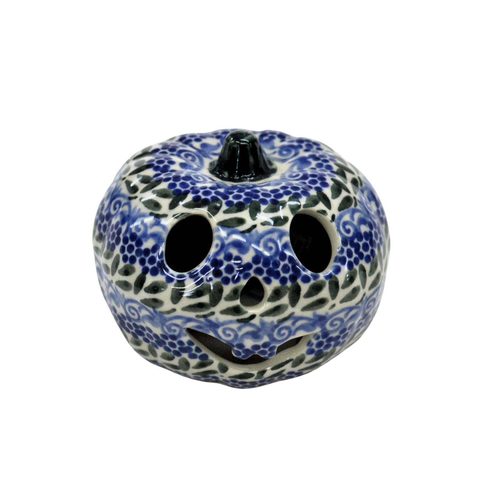 Ozdobna dynia ceramiczna o imieniu Baby Boo (lampion ceramiczny), ręcznie malowana ceramika bolesławiecka to doskonały element dekoracyjny do każdego ogrodu, tarasu lub wnętrza Twojego domu, podczas celebrowania Halloween bądź w okresie jesiennym, kiedy to liście lecą z drzew, roślinność obumiera a nasze śliczne ręcznie wykonane zdobienia ceramiki artystycznej nadają charakteru wystroju Twojego domu.