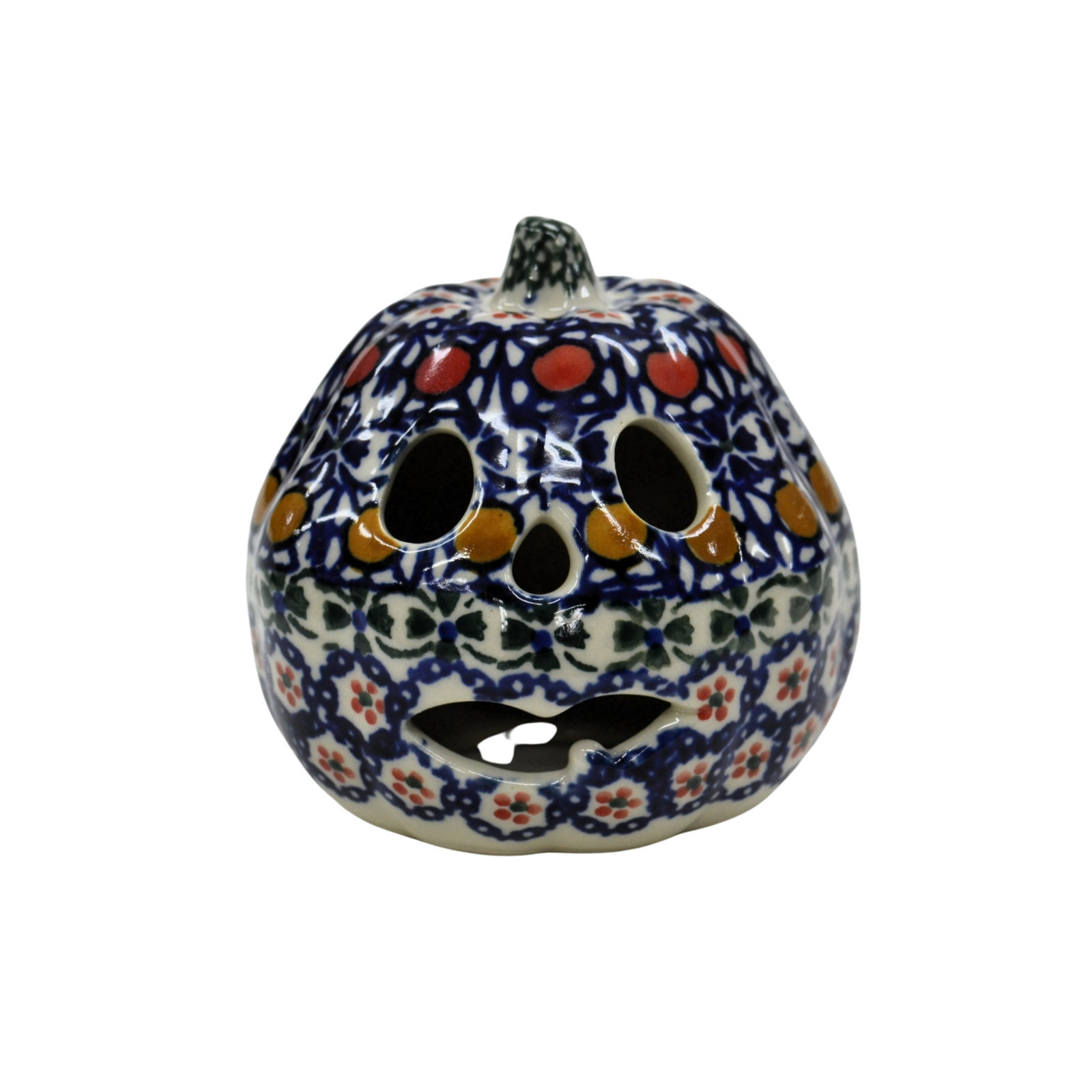 Ozdobna dynia ceramiczna o imieniu Goblin (lampion ceramiczny), ręcznie malowana ceramika bolesławiecka to doskonały element dekoracyjny do każdego ogrodu, tarasu lub wnętrza Twojego domu, podczas celebrowania Halloween bądź w okresie jesiennym, kiedy to liście lecą z drzew, roślinność obumiera a nasze śliczne ręcznie wykonane zdobienia ceramiki artystycznej nadają charakteru wystroju Twojego domu.