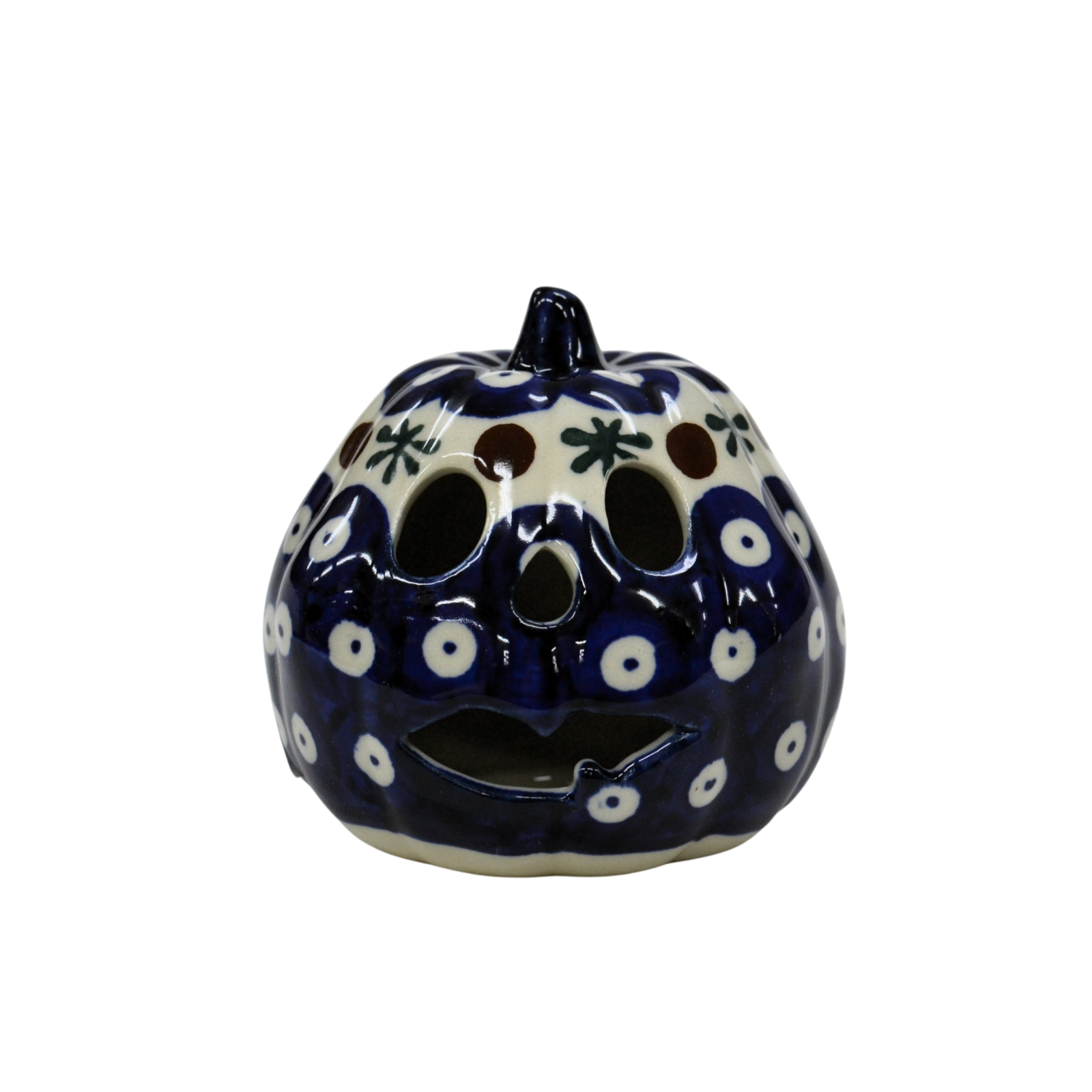Ozdobna dynia ceramiczna o imieniu Goblin (lampion ceramiczny), ręcznie malowana ceramika bolesławiecka to doskonały element dekoracyjny do każdego ogrodu, tarasu lub wnętrza Twojego domu, podczas celebrowania Halloween bądź w okresie jesiennym, kiedy to liście lecą z drzew, roślinność obumiera a nasze śliczne ręcznie wykonane zdobienia ceramiki artystycznej nadają charakteru wystroju Twojego domu.
