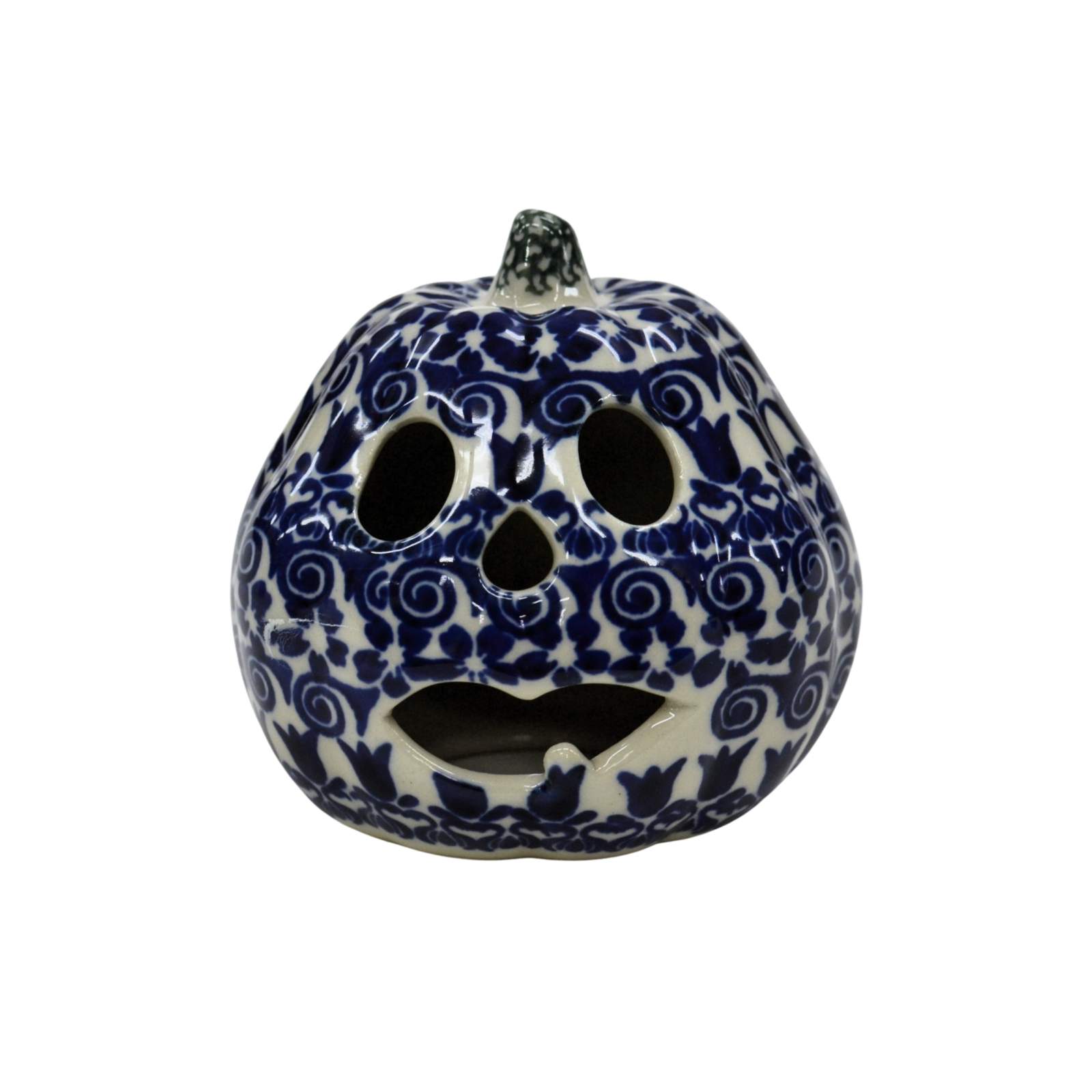 Ozdobna dynia ceramiczna o imieniu Goblin (lampion ceramiczny), ręcznie malowana ceramika bolesławiecka to doskonały element dekoracyjny do każdego ogrodu, tarasu lub wnętrza Twojego domu, podczas celebrowania Halloween bądź w okresie jesiennym, kiedy to liście lecą z drzew, roślinność obumiera a nasze śliczne ręcznie wykonane zdobienia ceramiki artystycznej nadają charakteru wystroju Twojego domu.