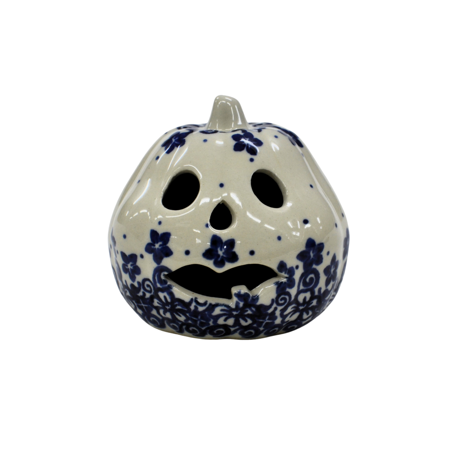 Ozdobna dynia ceramiczna o imieniu Goblin (lampion ceramiczny), ręcznie malowana ceramika bolesławiecka to doskonały element dekoracyjny do każdego ogrodu, tarasu lub wnętrza Twojego domu, podczas celebrowania Halloween bądź w okresie jesiennym, kiedy to liście lecą z drzew, roślinność obumiera a nasze śliczne ręcznie wykonane zdobienia ceramiki artystycznej nadają charakteru wystroju Twojego domu.