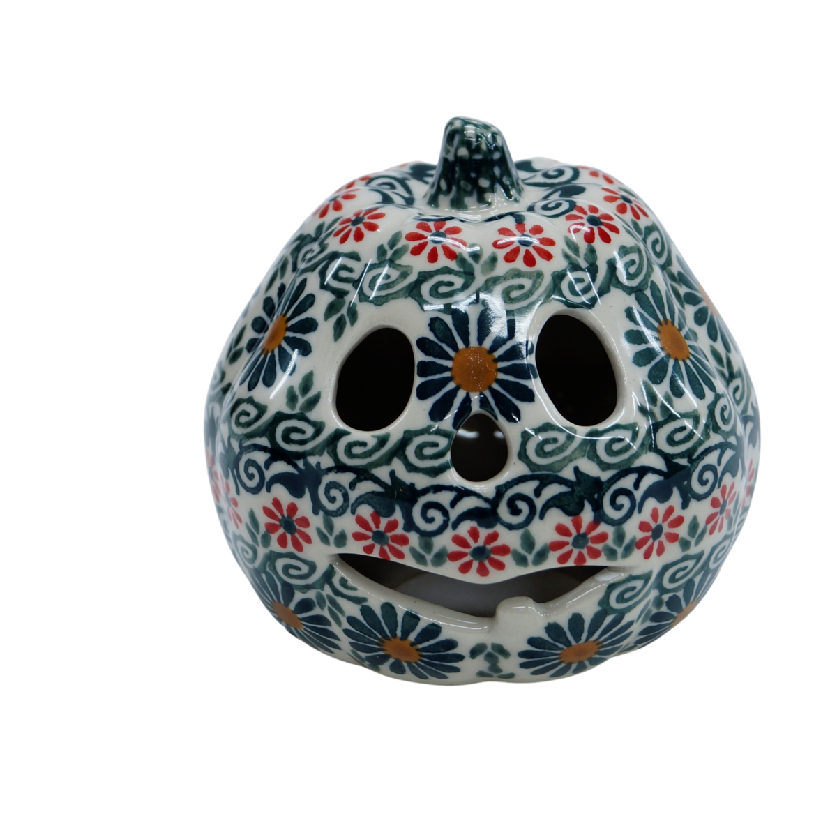 Ozdobna dynia ceramiczna o imieniu Goblin (lampion ceramiczny), ręcznie malowana ceramika bolesławiecka to doskonały element dekoracyjny do każdego ogrodu, tarasu lub wnętrza Twojego domu, podczas celebrowania Halloween bądź w okresie jesiennym, kiedy to liście lecą z drzew, roślinność obumiera a nasze śliczne ręcznie wykonane zdobienia ceramiki artystycznej nadają charakteru wystroju Twojego domu.