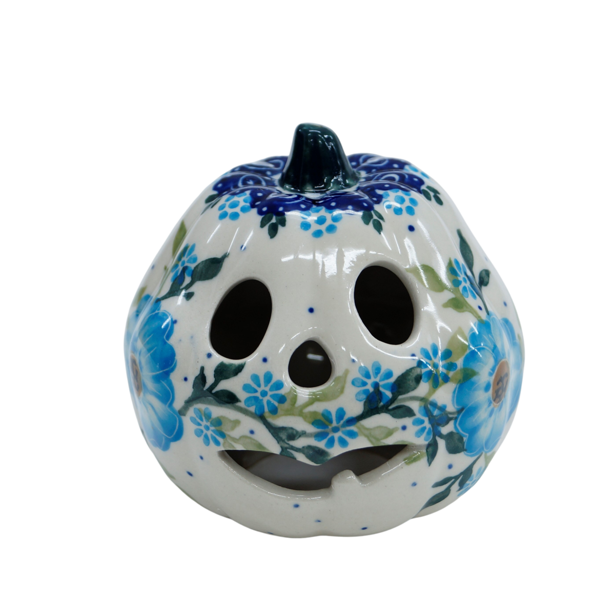 Ozdobna dynia ceramiczna o imieniu Goblin (lampion ceramiczny), ręcznie malowana ceramika bolesławiecka to doskonały element dekoracyjny do każdego ogrodu, tarasu lub wnętrza Twojego domu, podczas celebrowania Halloween bądź w okresie jesiennym, kiedy to liście lecą z drzew, roślinność obumiera a nasze śliczne ręcznie wykonane zdobienia ceramiki artystycznej nadają charakteru wystroju Twojego domu.