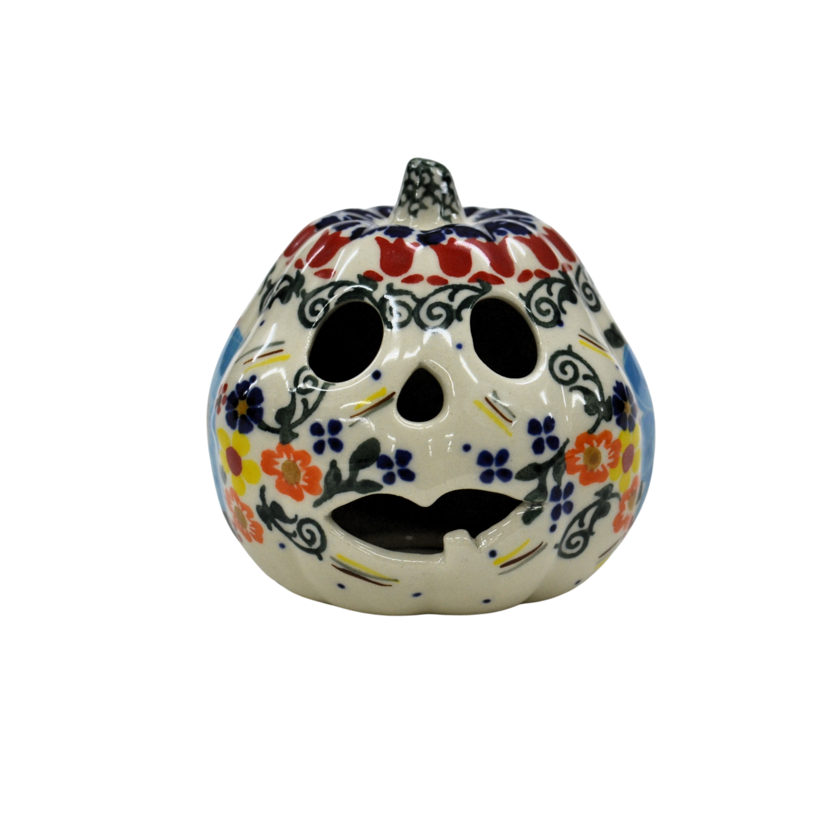 Ozdobna dynia ceramiczna o imieniu Goblin (lampion ceramiczny), ręcznie malowana ceramika bolesławiecka to doskonały element dekoracyjny do każdego ogrodu, tarasu lub wnętrza Twojego domu, podczas celebrowania Halloween bądź w okresie jesiennym, kiedy to liście lecą z drzew, roślinność obumiera a nasze śliczne ręcznie wykonane zdobienia ceramiki artystycznej nadają charakteru wystroju Twojego domu.