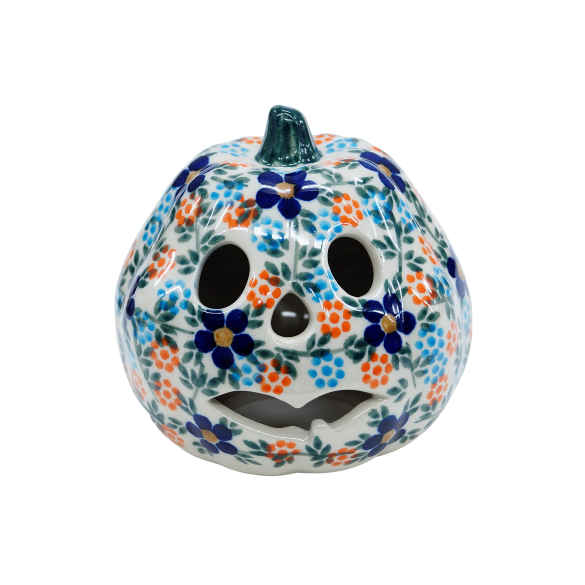 Ozdobna dynia ceramiczna o imieniu Goblin (lampion ceramiczny), ręcznie malowana ceramika bolesławiecka to doskonały element dekoracyjny do każdego ogrodu, tarasu lub wnętrza Twojego domu, podczas celebrowania Halloween bądź w okresie jesiennym, kiedy to liście lecą z drzew, roślinność obumiera a nasze śliczne ręcznie wykonane zdobienia ceramiki artystycznej nadają charakteru wystroju Twojego domu.