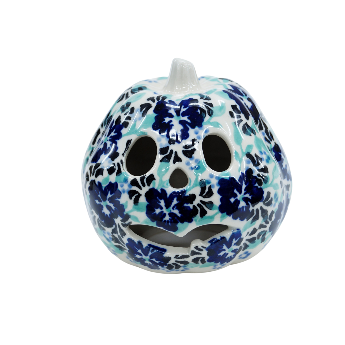 Ozdobna dynia ceramiczna o imieniu Goblin (lampion ceramiczny), ręcznie malowana ceramika bolesławiecka to doskonały element dekoracyjny do każdego ogrodu, tarasu lub wnętrza Twojego domu, podczas celebrowania Halloween bądź w okresie jesiennym, kiedy to liście lecą z drzew, roślinność obumiera a nasze śliczne ręcznie wykonane zdobienia ceramiki artystycznej nadają charakteru wystroju Twojego domu.