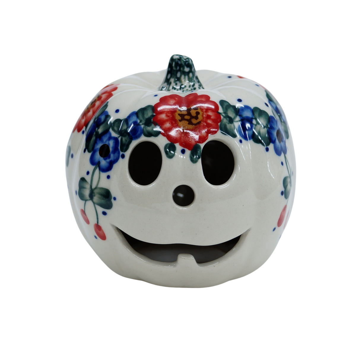 Ozdobna dynia ceramiczna o imieniu Jack (lampion ceramiczny), ręcznie malowana ceramika bolesławiecka to doskonały element dekoracyjny do każdego ogrodu, tarasu lub wnętrza Twojego domu, podczas celebrowania Halloween bądź w okresie jesiennym, kiedy to liście lecą z drzew, roślinność obumiera a nasze śliczne ręcznie wykonane zdobienia ceramiki artystycznej nadają charakteru wystroju Twojego domu.