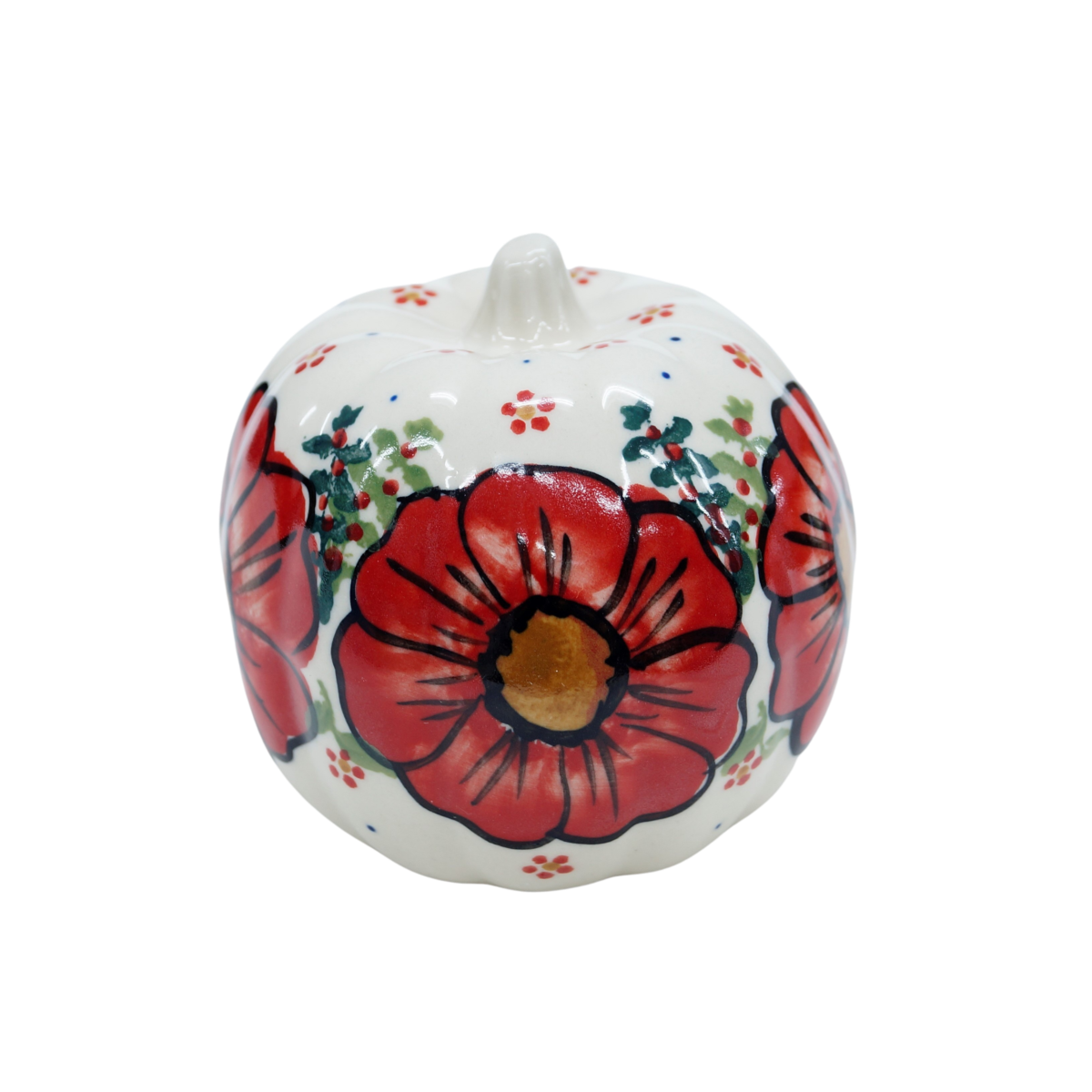Ozdobna dynia ceramiczna o imieniu Jack (lampion ceramiczny), ręcznie malowana ceramika bolesławiecka to doskonały element dekoracyjny do każdego ogrodu, tarasu lub wnętrza Twojego domu, podczas celebrowania Halloween bądź w okresie jesiennym, kiedy to liście lecą z drzew, roślinność obumiera a nasze śliczne ręcznie wykonane zdobienia ceramiki artystycznej nadają charakteru wystroju Twojego domu.