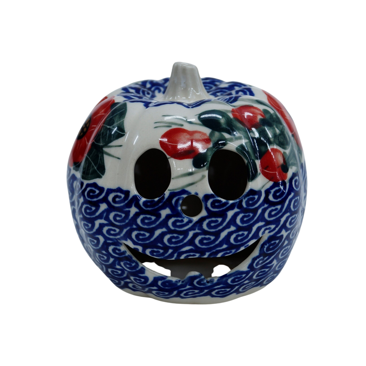 Ozdobna dynia ceramiczna o imieniu Jack (lampion ceramiczny), ręcznie malowana ceramika bolesławiecka to doskonały element dekoracyjny do każdego ogrodu, tarasu lub wnętrza Twojego domu, podczas celebrowania Halloween bądź w okresie jesiennym, kiedy to liście lecą z drzew, roślinność obumiera a nasze śliczne ręcznie wykonane zdobienia ceramiki artystycznej nadają charakteru wystroju Twojego domu.
